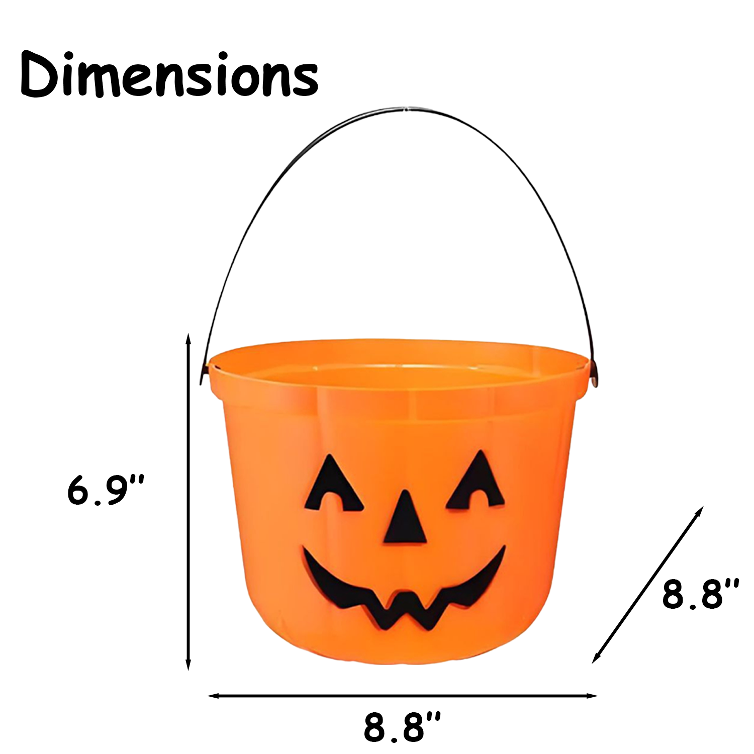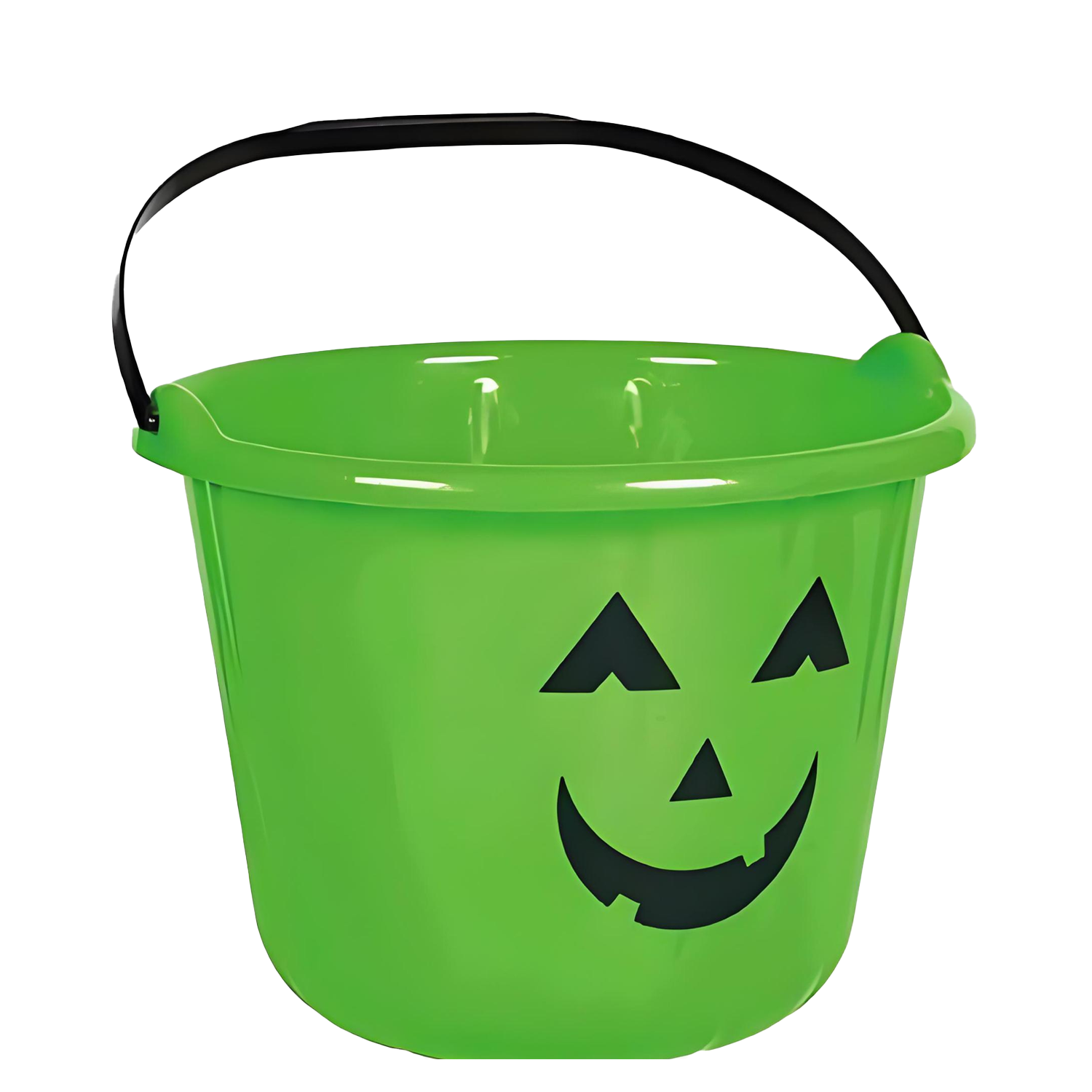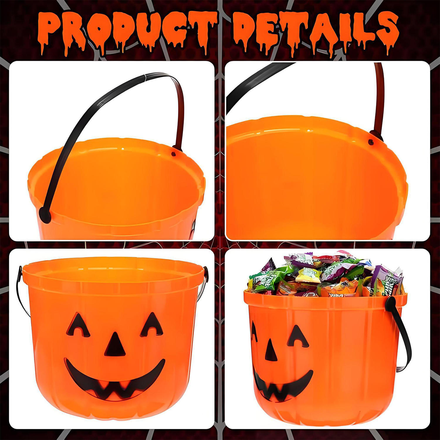 This large-capacity plastic treat bucket features a classic pumpkin shape, perfect for Halloween. Made from lightweight yet durable plastic, it serves as a candy collection container and decoration. The spacious interior holds plenty of treats, while the sturdy handle ensures easy carrying for children. Ideal for costume parties and trick-or-treating, this bucket combines functional storage with festive charm, providing a safe and enjoyable experience for kids during Halloween.