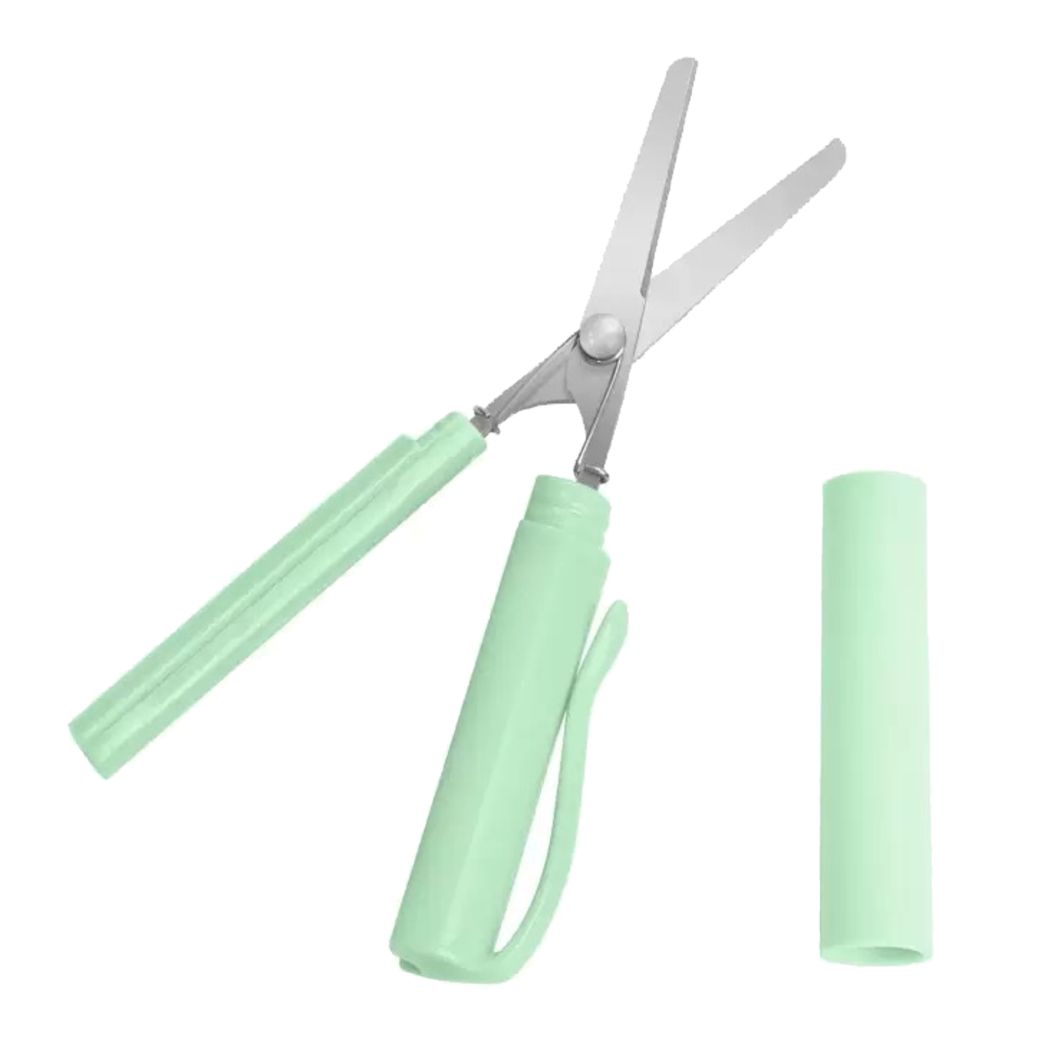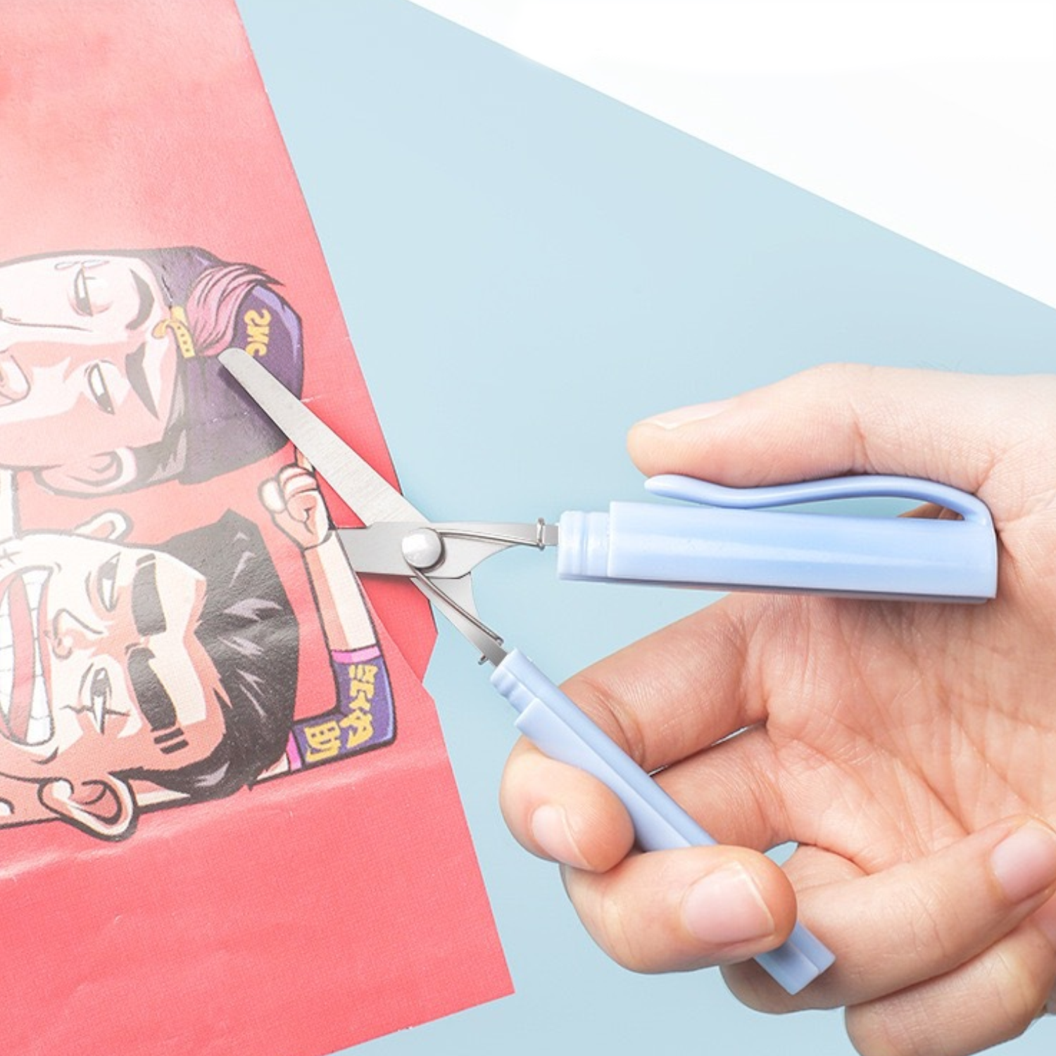 Kids’ scissors: PP/stainless steel, safe blunt tips, foldable (pen-shaped), ergonomic, comfy. For home/school paper-cutting.