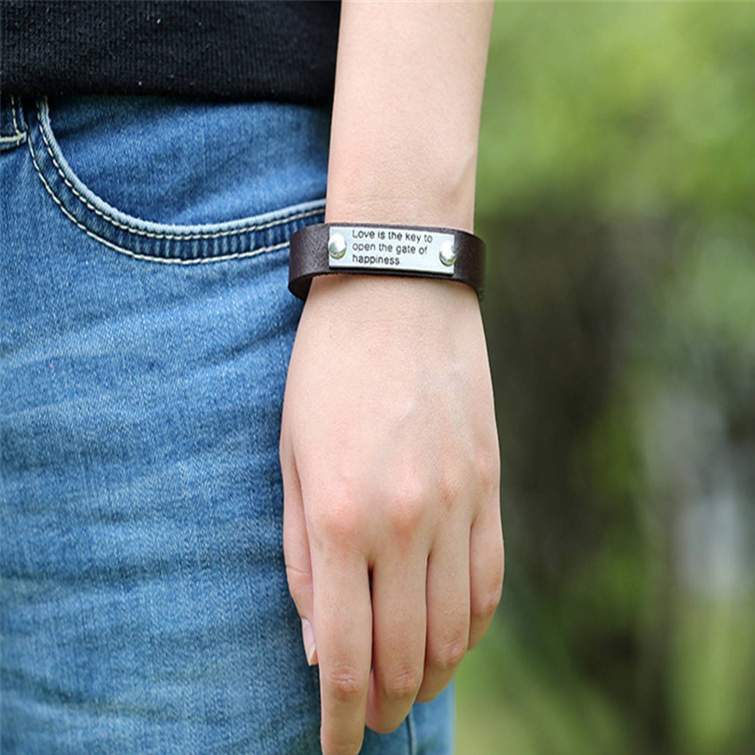 Easy to wear with an adjustable buckle for any wrist size, this leather bracelet is made of high-quality soft materials for everyday wear. You can customize what you want. It was carved by laser. It is the best gift choice for men, suitable for Father’s Day, birthdays and all important activities.