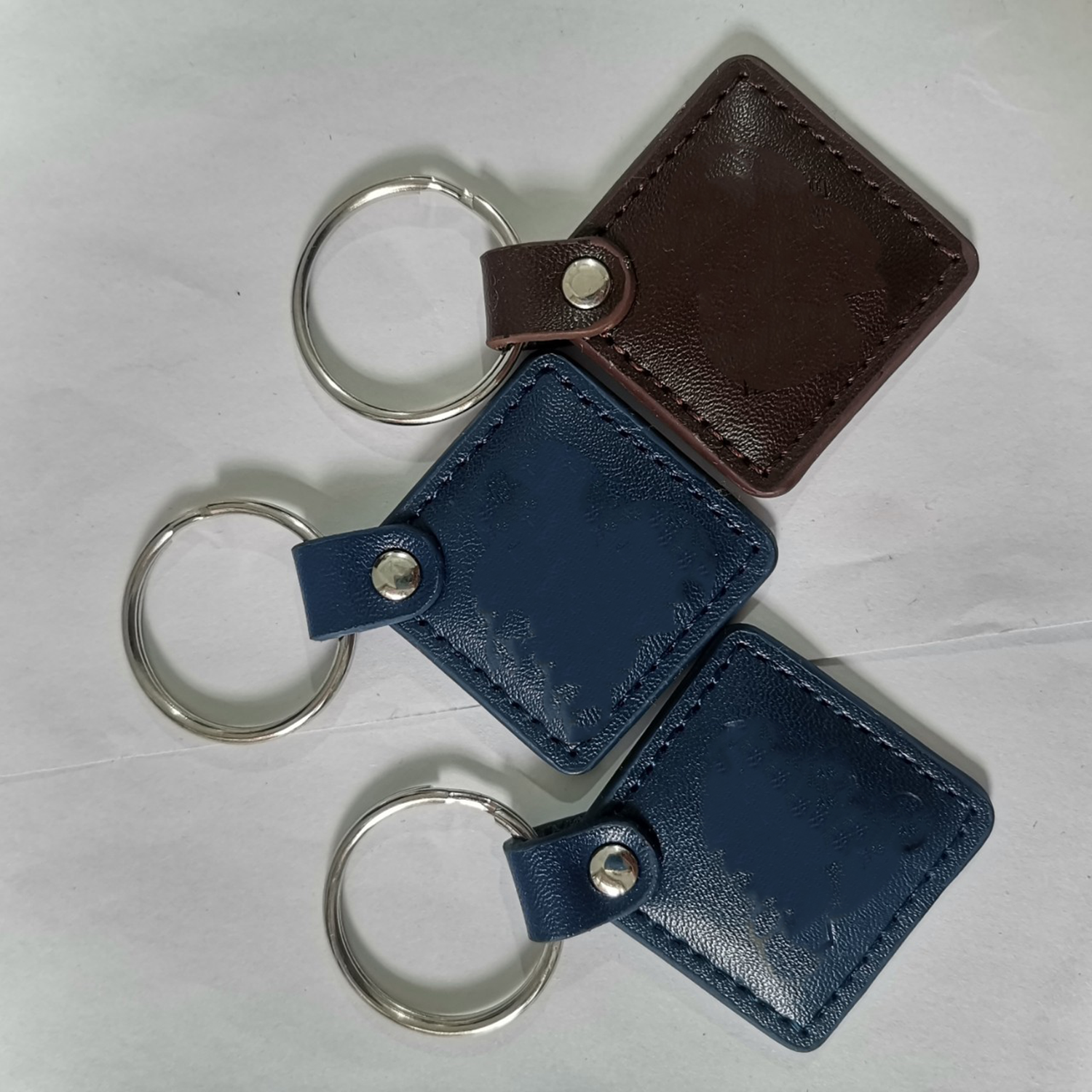 Introducing our classic leather keychain, a must-have accessory for your daily routine. Crafted from premium leather, this keychain exudes elegance and durability, ensuring it will last for years. The keychain features a square-shaped leather body, accented by fine stitching along the edges. This stitching detail adds a touch of sophistication while also enhancing the overall strength and durability. At the center of the keychain, you’ll find a sturdy metal ring.