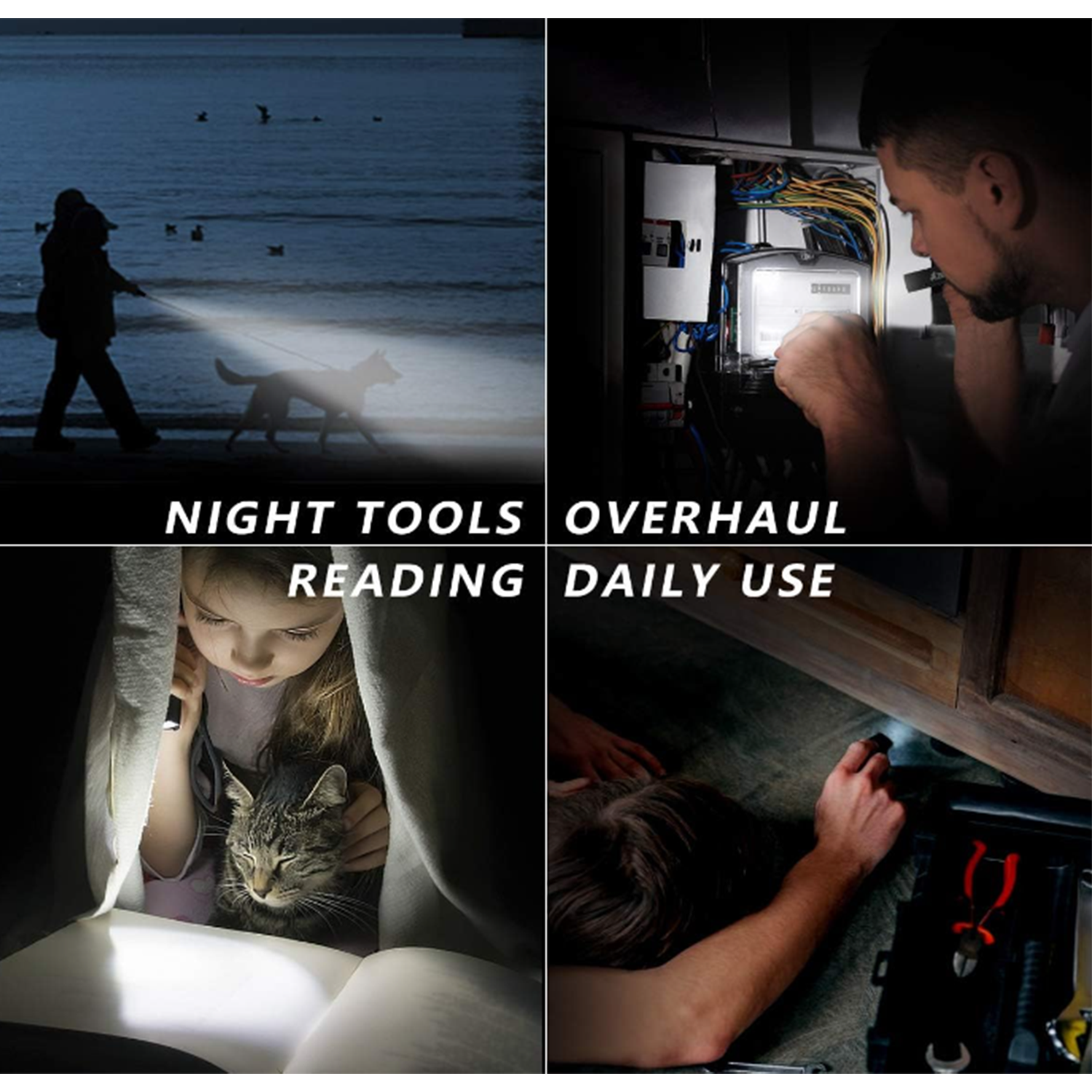 The Subminiature EDC flashlight, weighing 1.2Oz and 2.5 In, fits easily in pockets, bags. Its compact size allows you to keep one in your pocket and two more in your car, office, or home. It offers 4 LED brightness modes up to 450 lumens, reaching 200 meters. Rechargeable with a micro USB cable, its lithium battery indicator turns red when charging and off when fully charged. Its sturdy aluminum casing is rust, corrosion, and fall-resistant, suitable for outdoor activities.