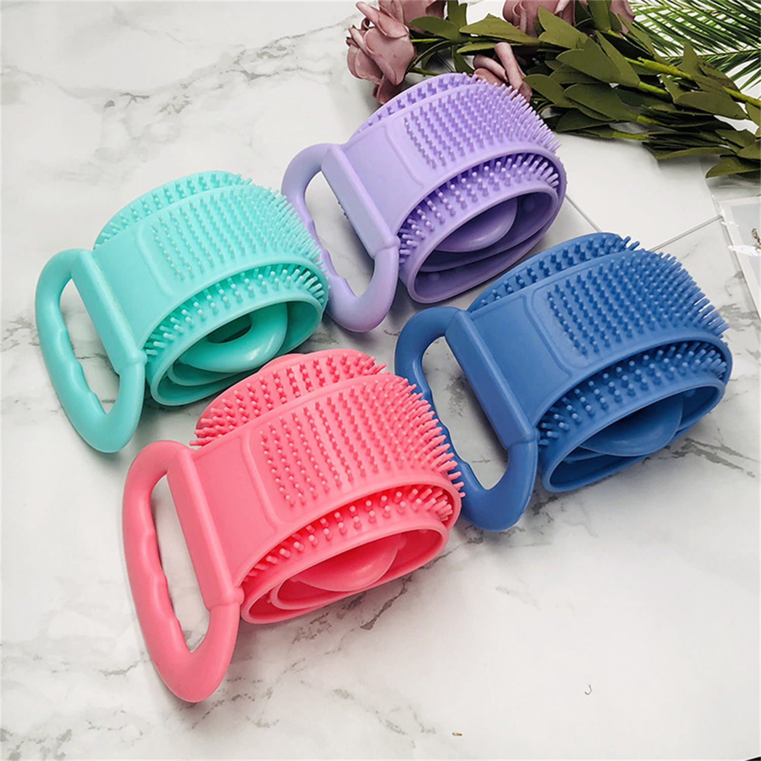 Made of silicone, eco-friendly, durable and easy to clean. With a double-sided mechanism design, it can effectively exfoliate, massage and rejuvenate your skin, to provide maximum comfort for your back and other body parts. It is 31.5” long, suitable for all people, especially adult men. You can hang it there after bathing, it will dry quickly. Also it is durable, can use it longer than loofah or a plastic bath ball.