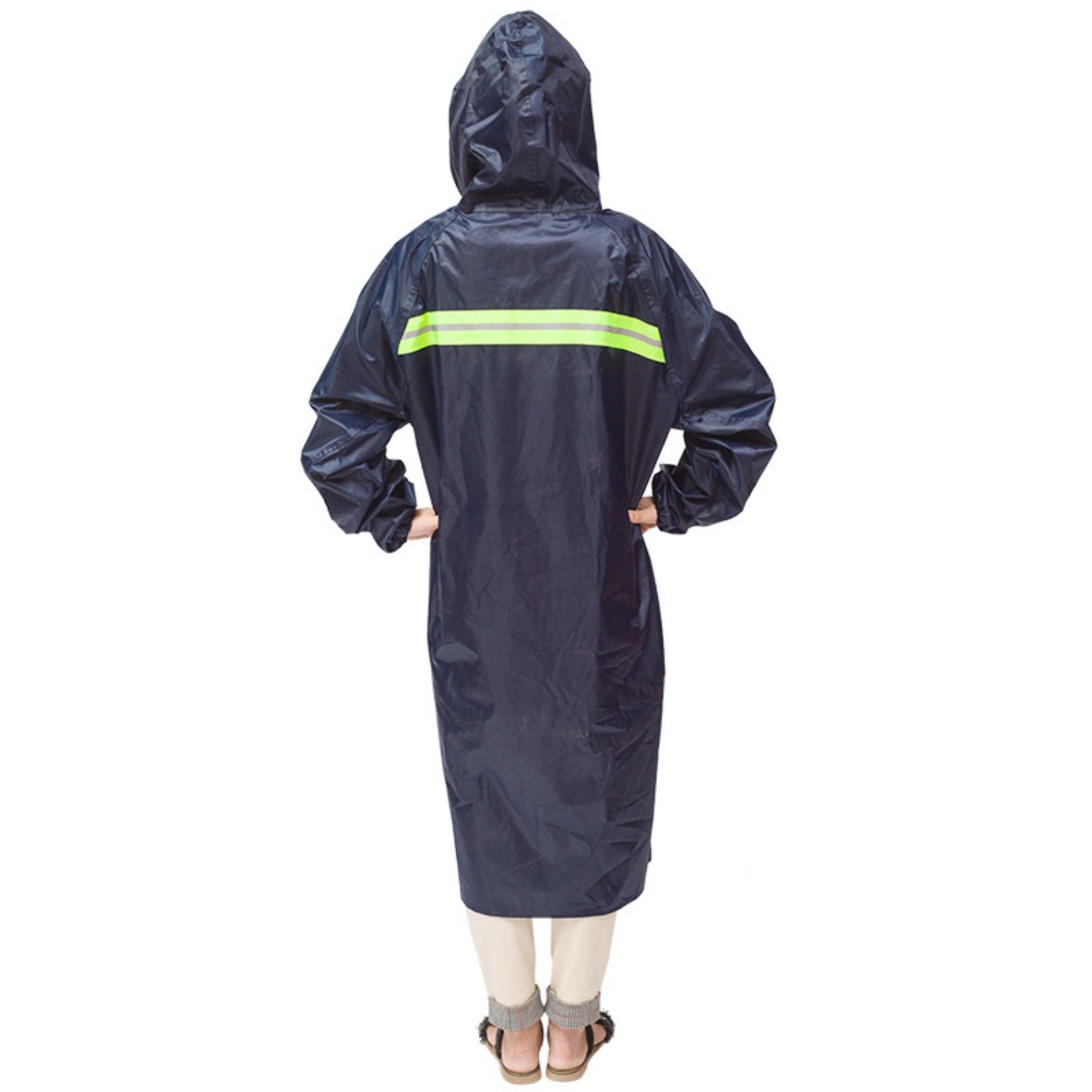 Oxford, made of high quality windproof and snow proof thickened fabric, more durable and waterproof. Adjustable string pull caps, black front snaps, elastic sleeves, reflector strips on back.More safe when you walking in the evening. Fitting for working or outdoor activity including hiking, fishing, hunting, boating or simply jogging in the rain. Emergency Poncho, Emergency Rain Gear, Weather Protection. The length over the knees, provide the most protection keep you dry. One size fits all.