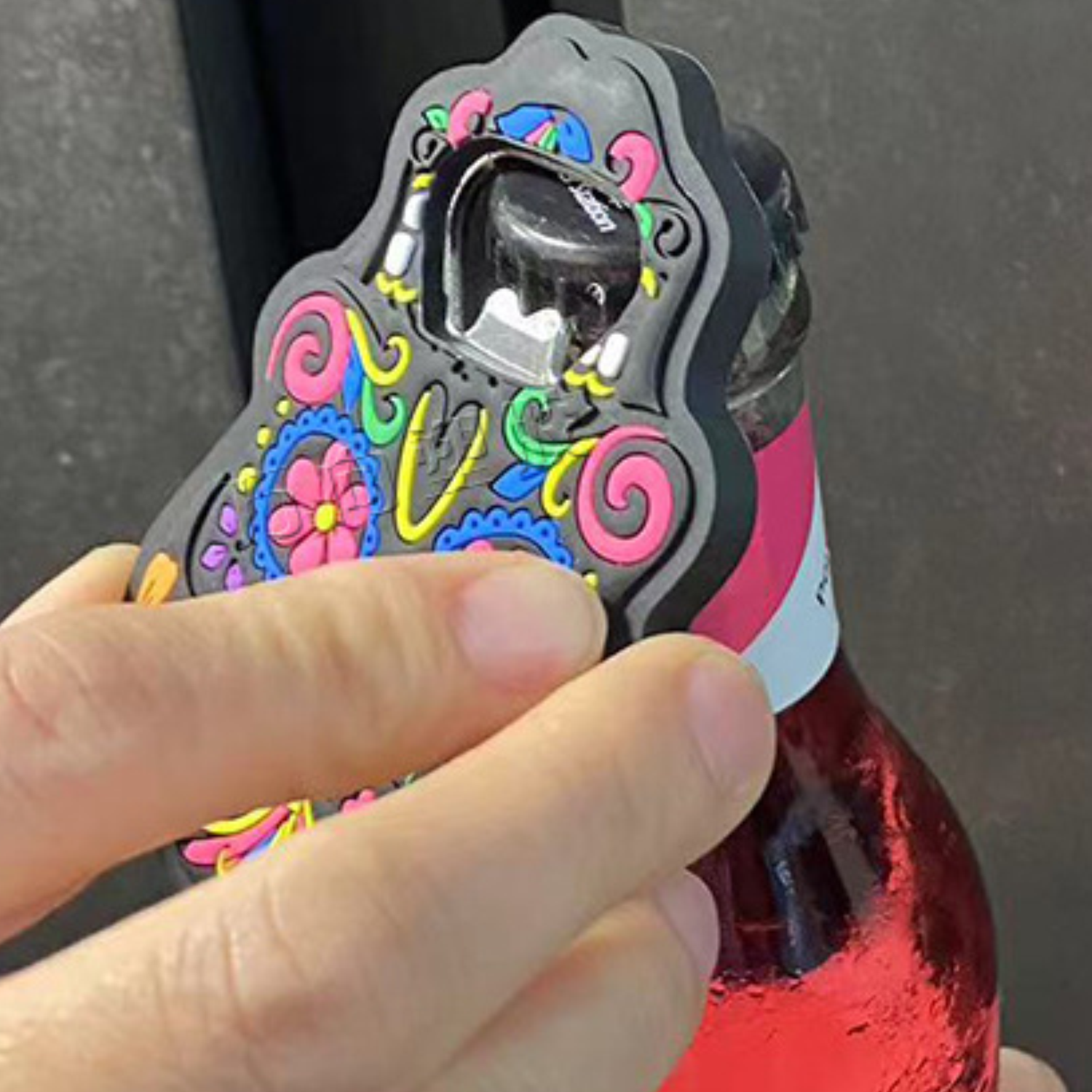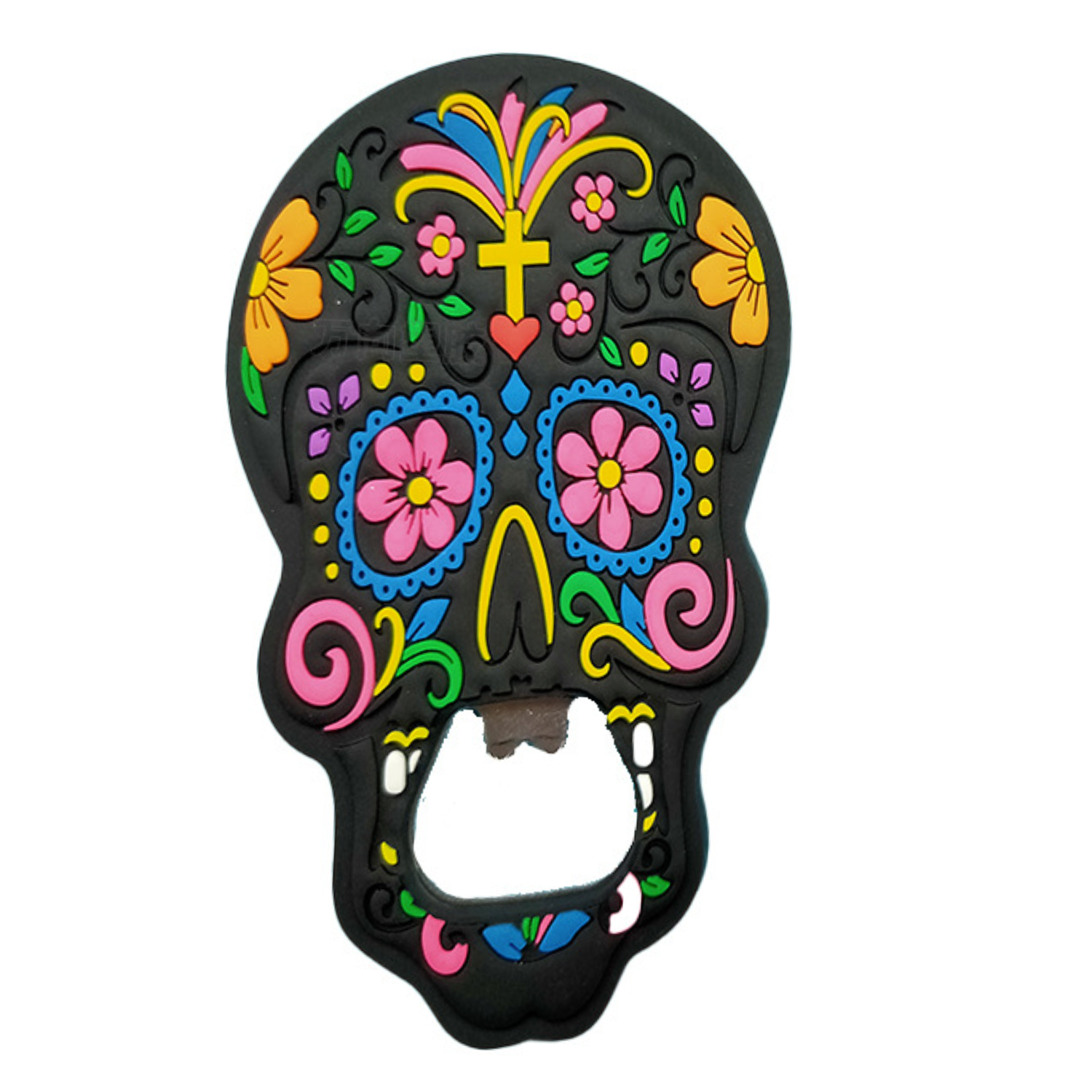 This vibrant bottle opener blends artistry and utility! Crafted from flexible PVC soft rubber, it features a colorful, intricately – designed skull shape that doubles as fridge decor. The strong built – in magnet lets it stick to refrigerators for easy access—no more lost openers!Use it to pop beer, soda, or cider bottles effortlessly. The soft rubber coating ensures a non – slip, comfortable grip that’s gentle on hands, while the durable material guarantees long – term use.