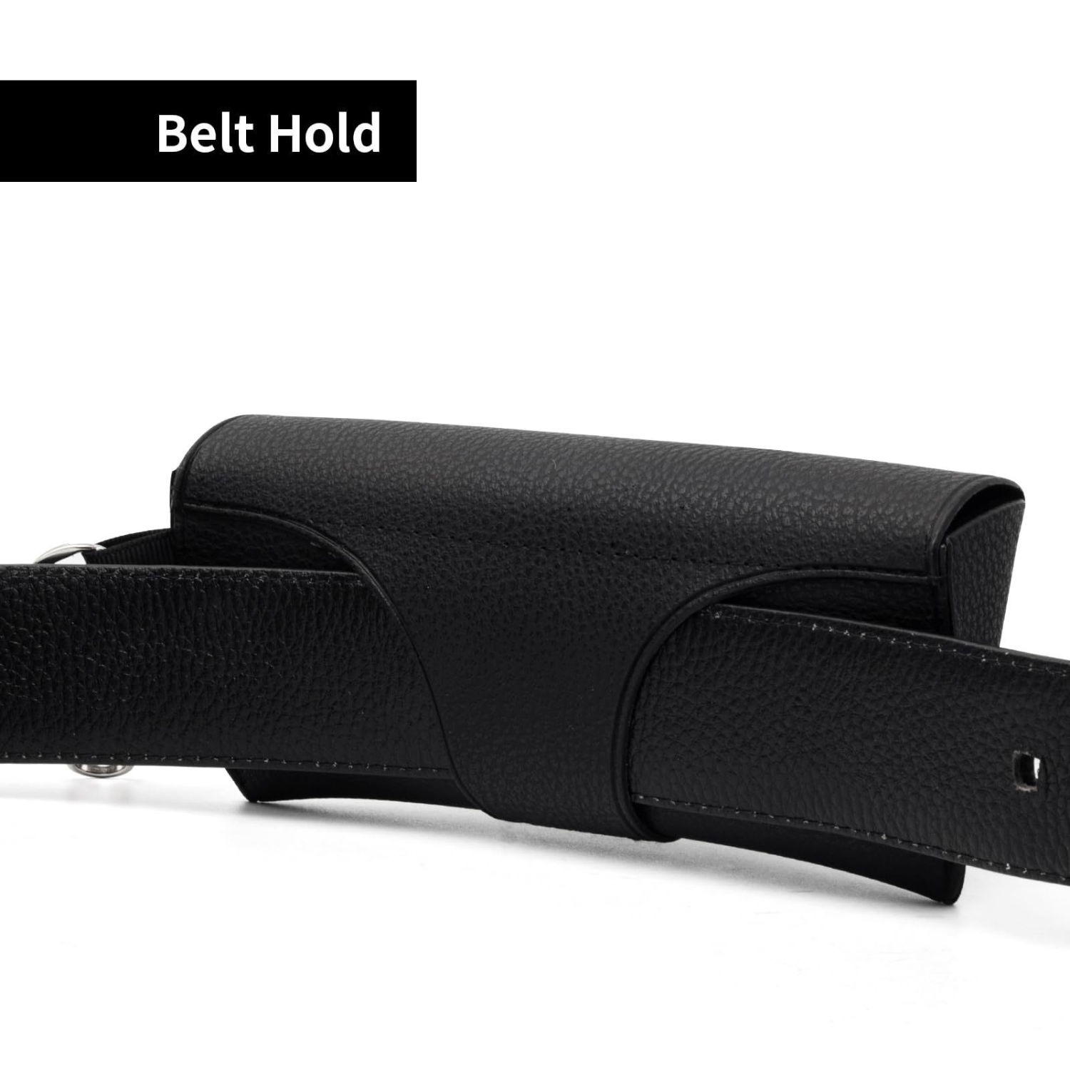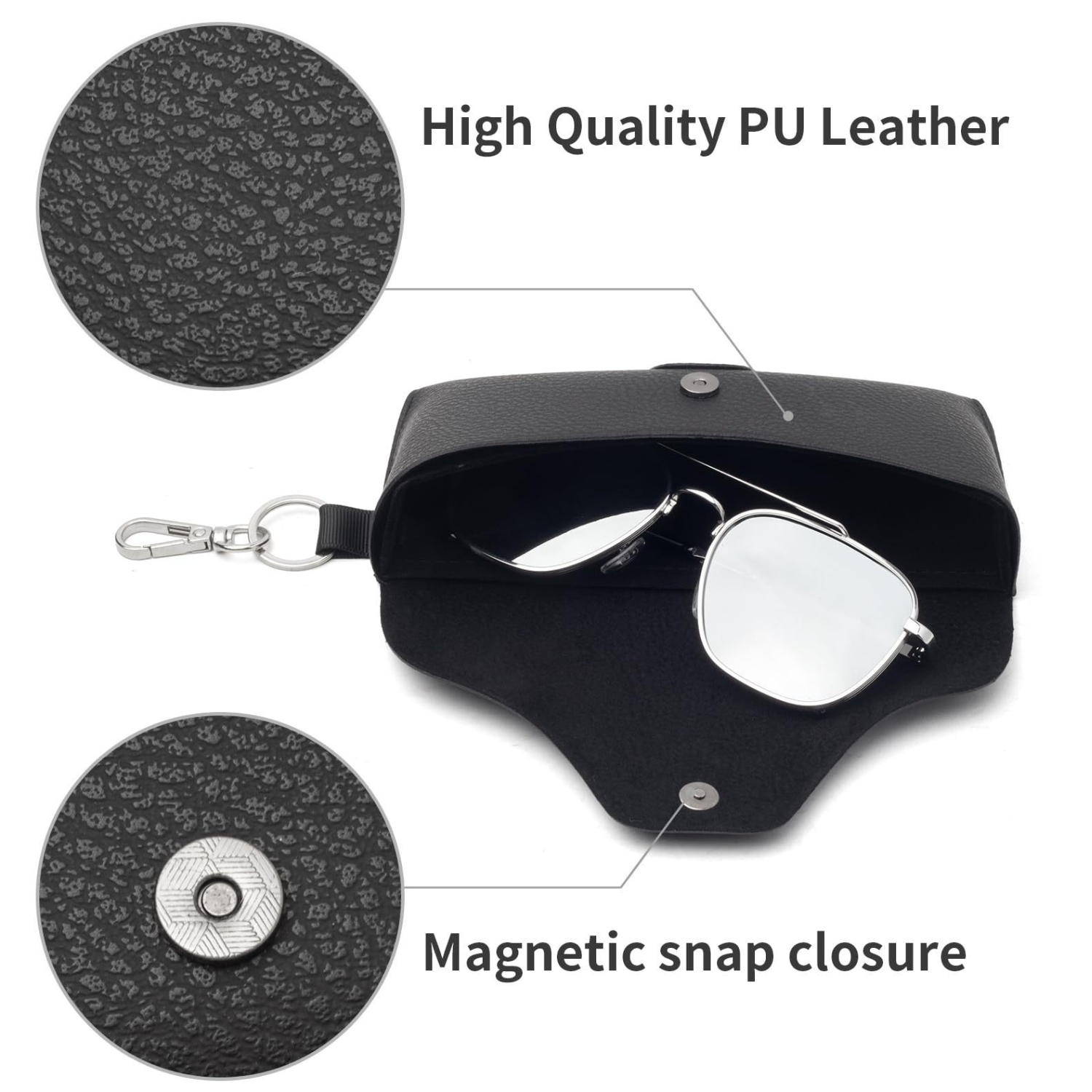 PU leather eyeglass case with carabiner & magnetic snap, secure, convenient, fits most glasses—ideal for daily, outdoor use.