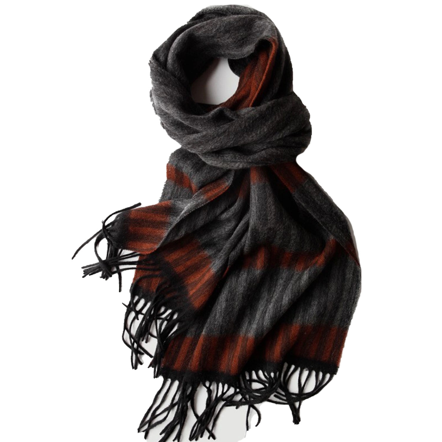 This men’s mixed cashmere striped scarf is made of 20% cashmere+80% wool, and is made of Inner Mongolia fresh cashmere, ensuring the comfort of wearing. The scarf is about 35cm wide and 2m long, which is suitable for most people. This scarf is thick and suitable for cold winter. It is a good choice whether it is for your own use or as a gift.