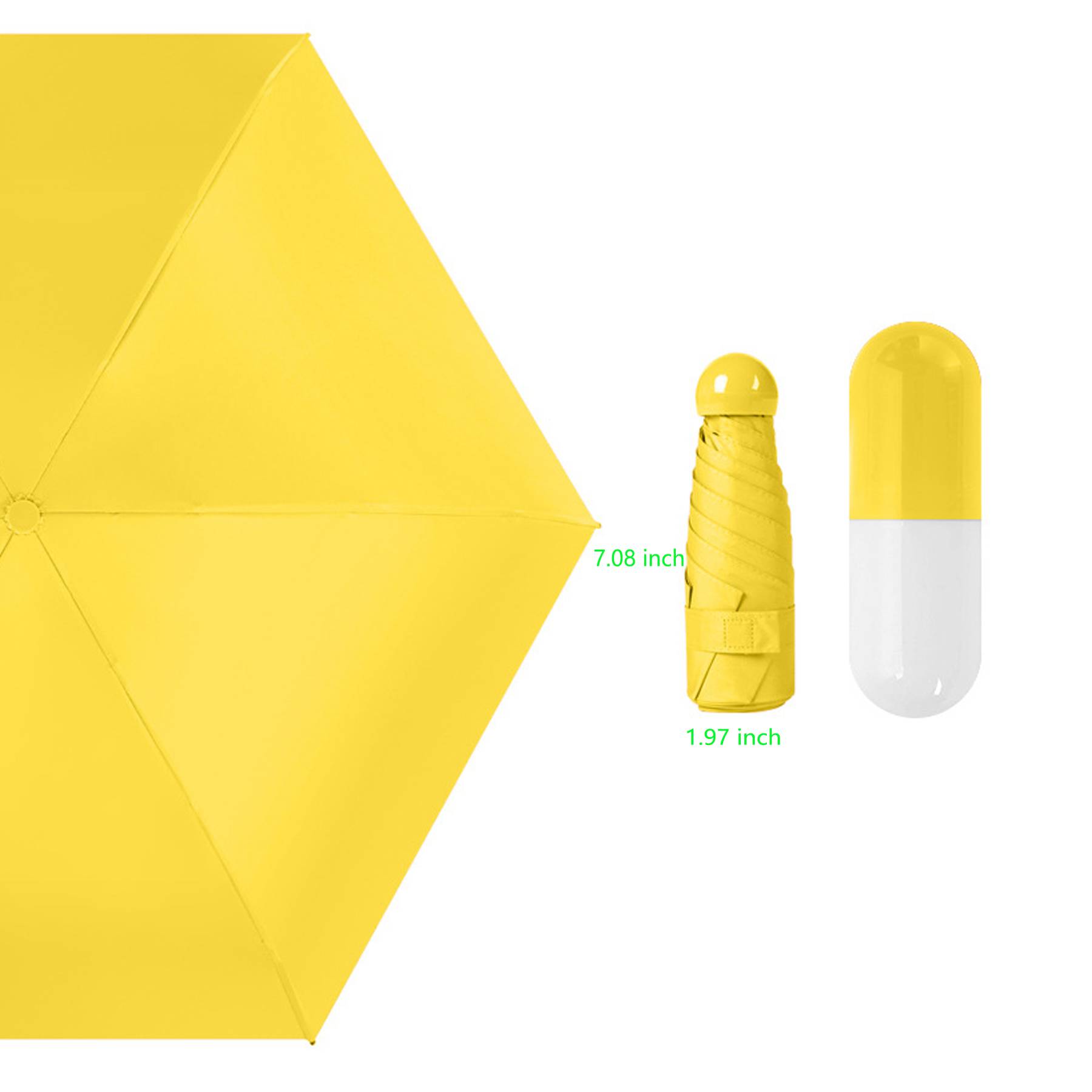 Fivefold Umbrella: Lightweight at 9oz, Compact at 8 inches in length, with a 42″ canopy. Fits in your backpack, makeup bag, handbag, or even your pockets – easy to carry. Made with 6 ribs of fiberglass and a steel shaft aluminum alloy, it’s designed to withstand strong winds without breaking. It features a layer of UV and water-blocking coating, providing UPF 50+ protection and blocking 99% of UV rays while drying quickly. Each umbrella comes with a matching capsule box.