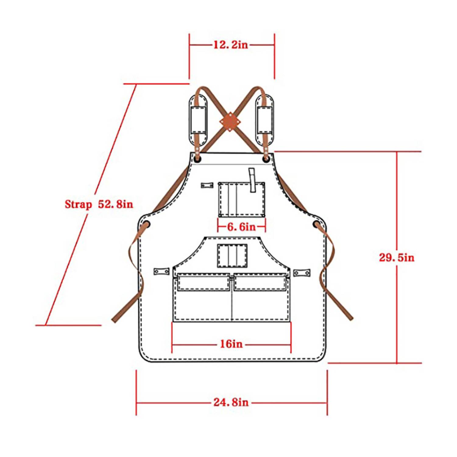 This canvas tool apron offers full coverage at 25” wide x 29.5” tall, crafted from thick, durable material for reliable protection. Designed with multiple multifunctional pockets, including chest, kangaroo, and deep tool pockets, it keeps essentials organized. Adjustable cross-back straps with removable shoulder pads ensure comfort, reducing neck strain. Perfect for woodworking, grilling, baking, painting, or crafting, this apron provides durability, safety, and all-day ease of use.