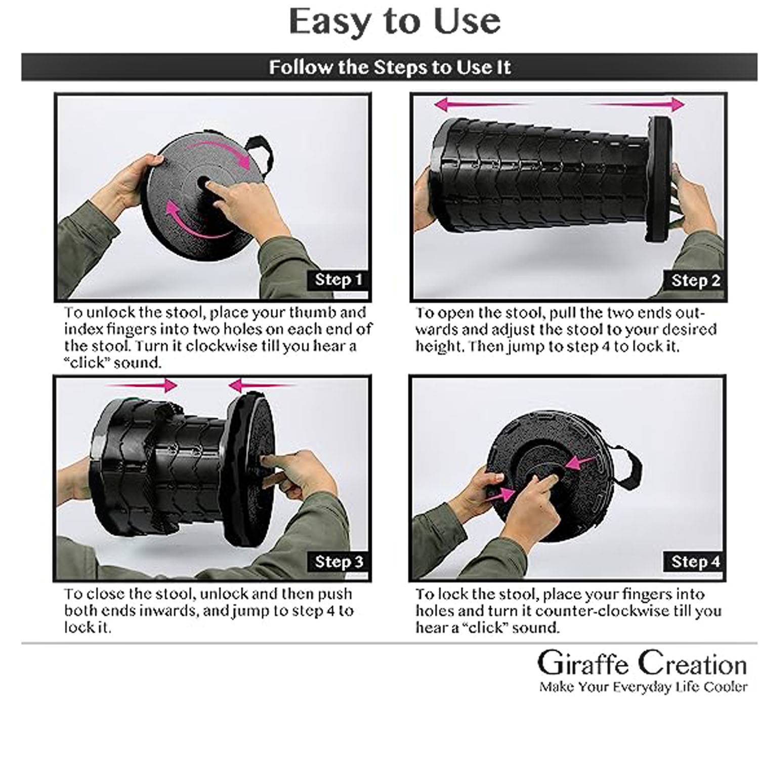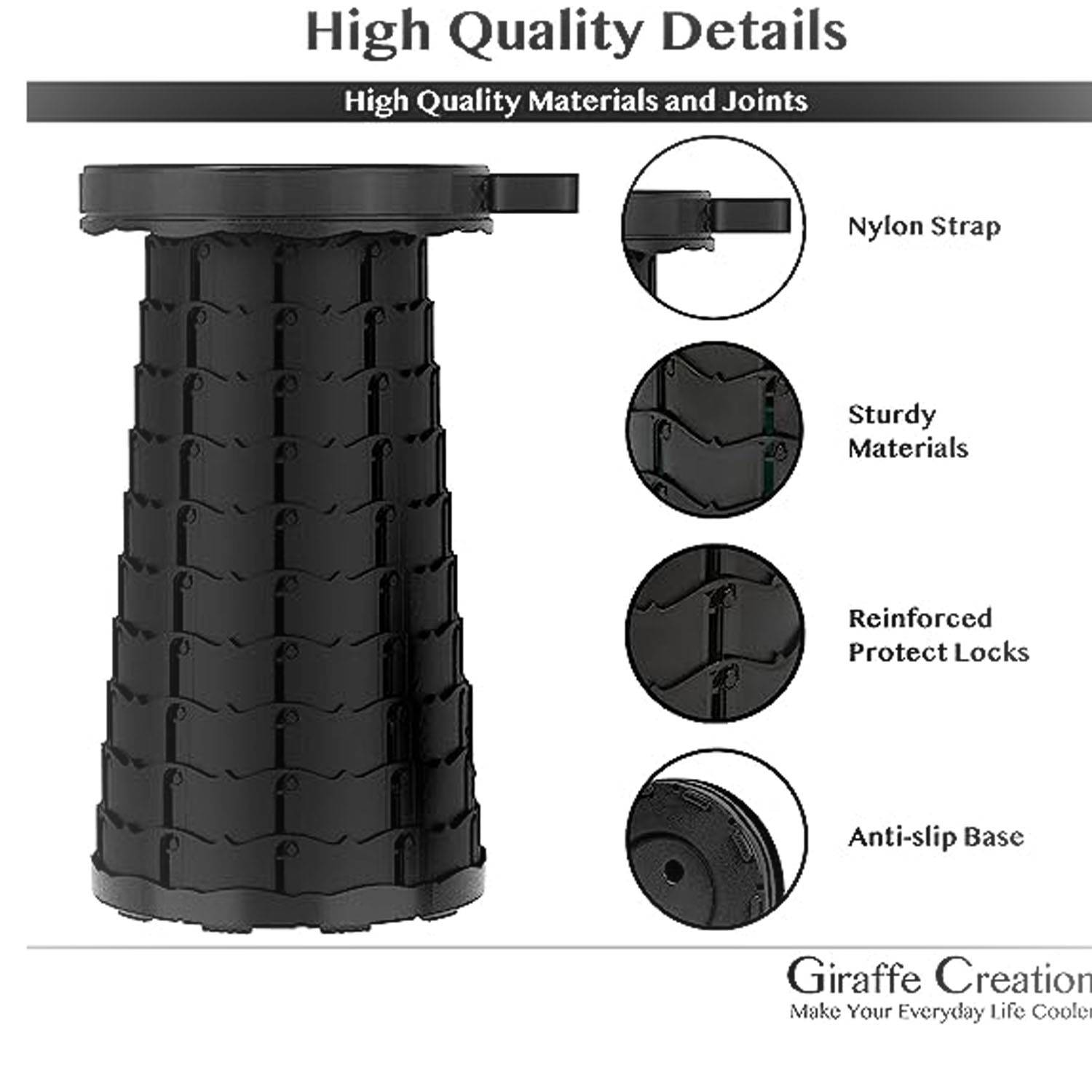 Heavy-duty PP construction with fish scale structure supports up to 400lbs, ensuring safety and stability for outdoor enthusiasts.Ranging from 2.5 to 17.7 inches, this versatile stool caters to both adults and children, making it an ideal gift for anyone in need of a foldable chair.Weighing just 2lbs and measuring 10.2 inches in diameter, this telescopic stool is easy to transport with the adjustable strap for hand or shoulder carrying.Featuring two buckles for effortless opening and closing, plus an anti-slip bottom for added safety during use.