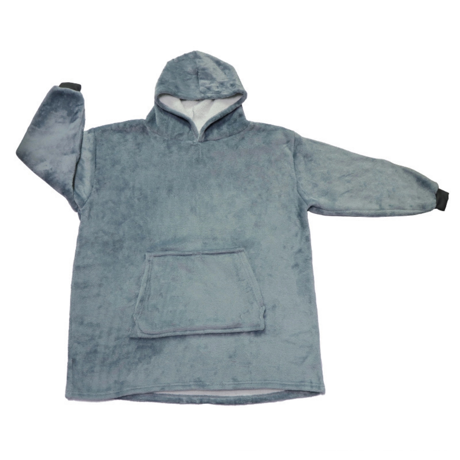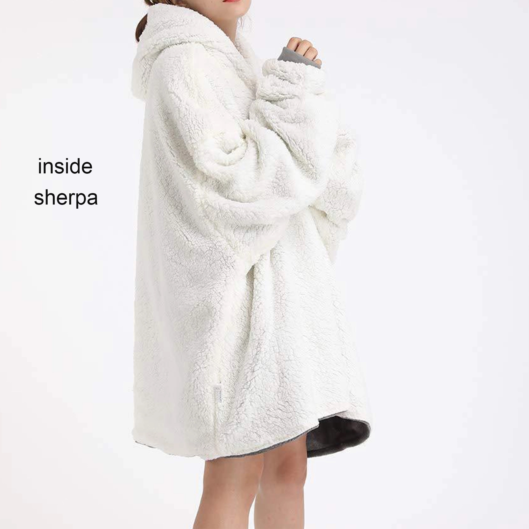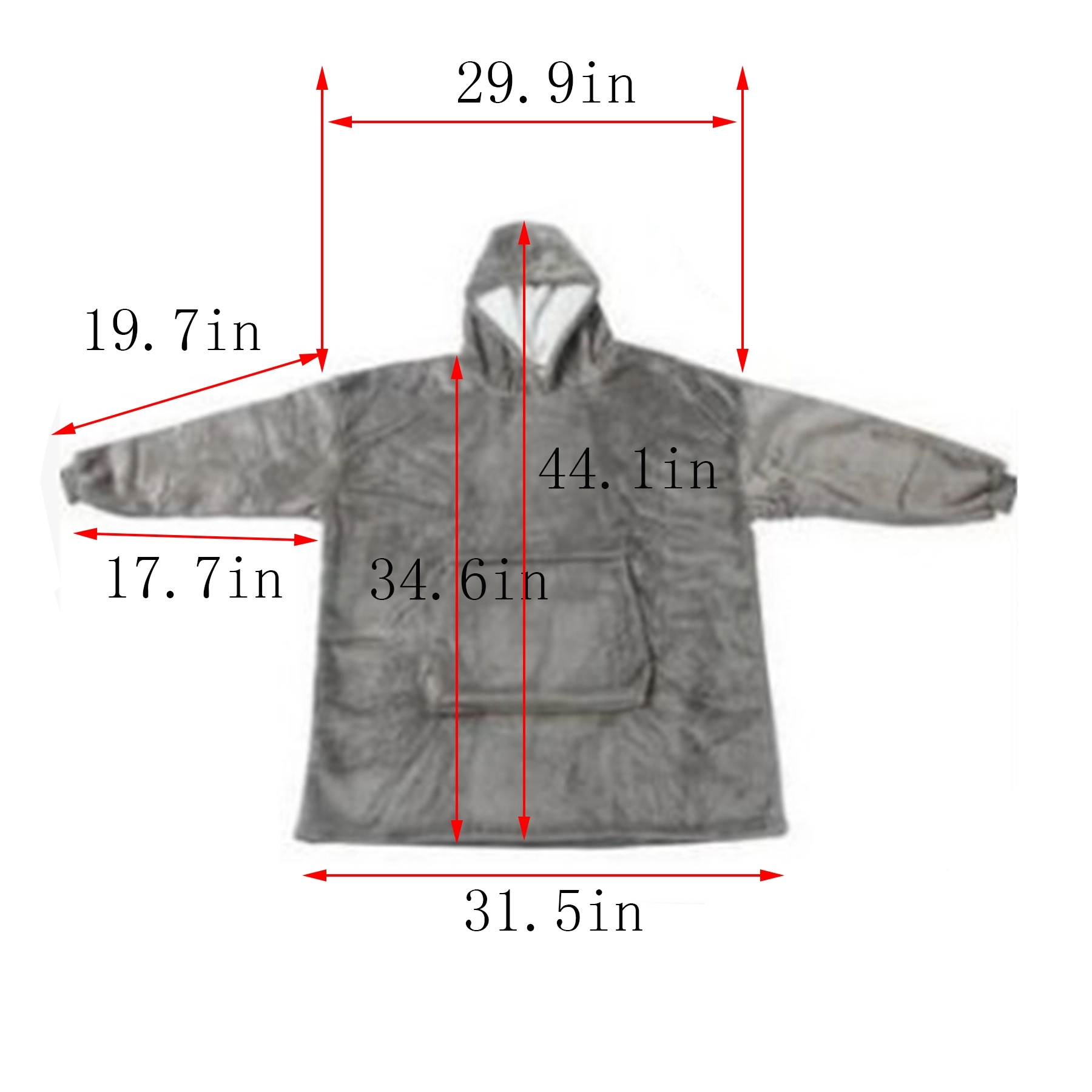 This wearable blanket keeps you warm & cozy while you lounge at home, watch TV, play video games, attend a sporting event or concert. Pull your legs into the plush fluffy sherpa to cover yourself completely on the couch, roll the sleeves up to make yourself a snack, & move around freely while taking your warmth wherever you go. The large, oversized comfortable design is a perfect fit for most all shapes & sizes. Bring it to the next outdoor barbeque, camping trip, beach, drive in or sleepover. The huge hood & pocket keeps your head & hands toasty warm. Keep what you need in arms reach in the pocket. Please noted: The price within 500 pieces is for shipping by express, over 500 pieces is for shipping by ocean. Material: sherpa-lined interior and a microfiber exterior.