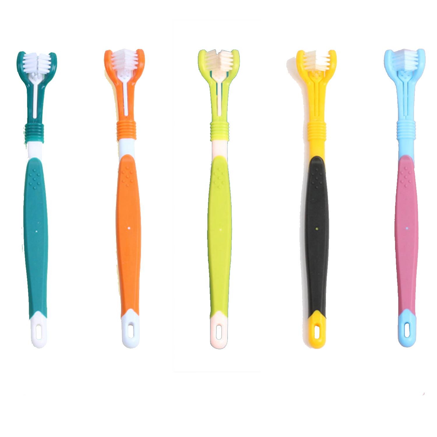 Pet 3-sided Toothbrush, all-angle clean, soft bristles, food-grade safe. Daily use for happy pets.
