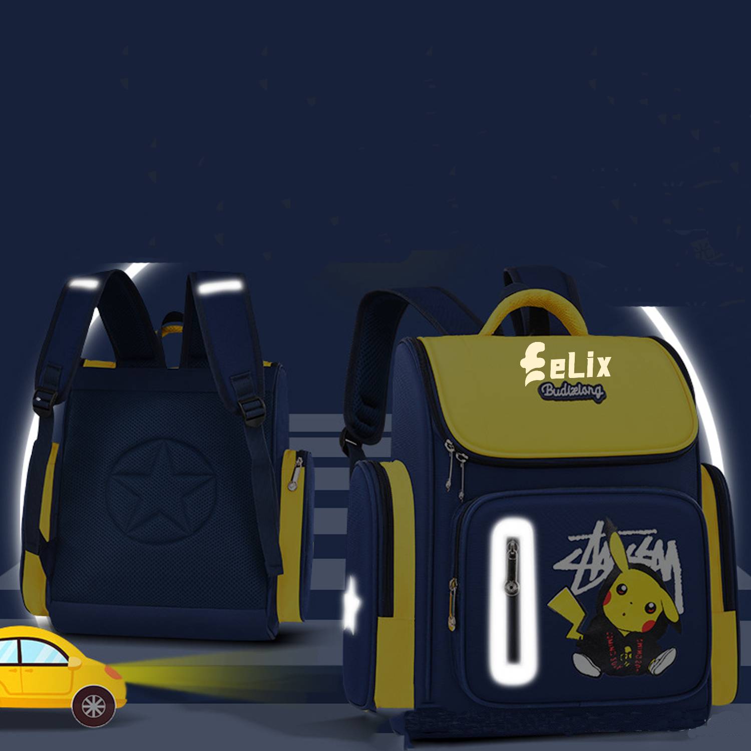 Made of durable polyester material, it ensures long-lasting use and easy maintenance.With dimensions of 14.6×6.3×11.82 inches, this backpack offers ample storage space to accommodate your school essentials. It features spacious compartments and pockets, allowing you to organize and carry your books, notebooks, stationery, and other belongings with ease.The adjustable straps ensure a comfortable fit, enabling you to customize the backpack according to your preference. Whether you’re a student heading to school or a Pikachu enthusiast looking for a trendy backpack, this Pikachu Student Backpack combines style and functionality.Designed with the Pikachu character and logo, this backpack showcases your love for Pokemon and adds a touch of fun to your daily routine.
