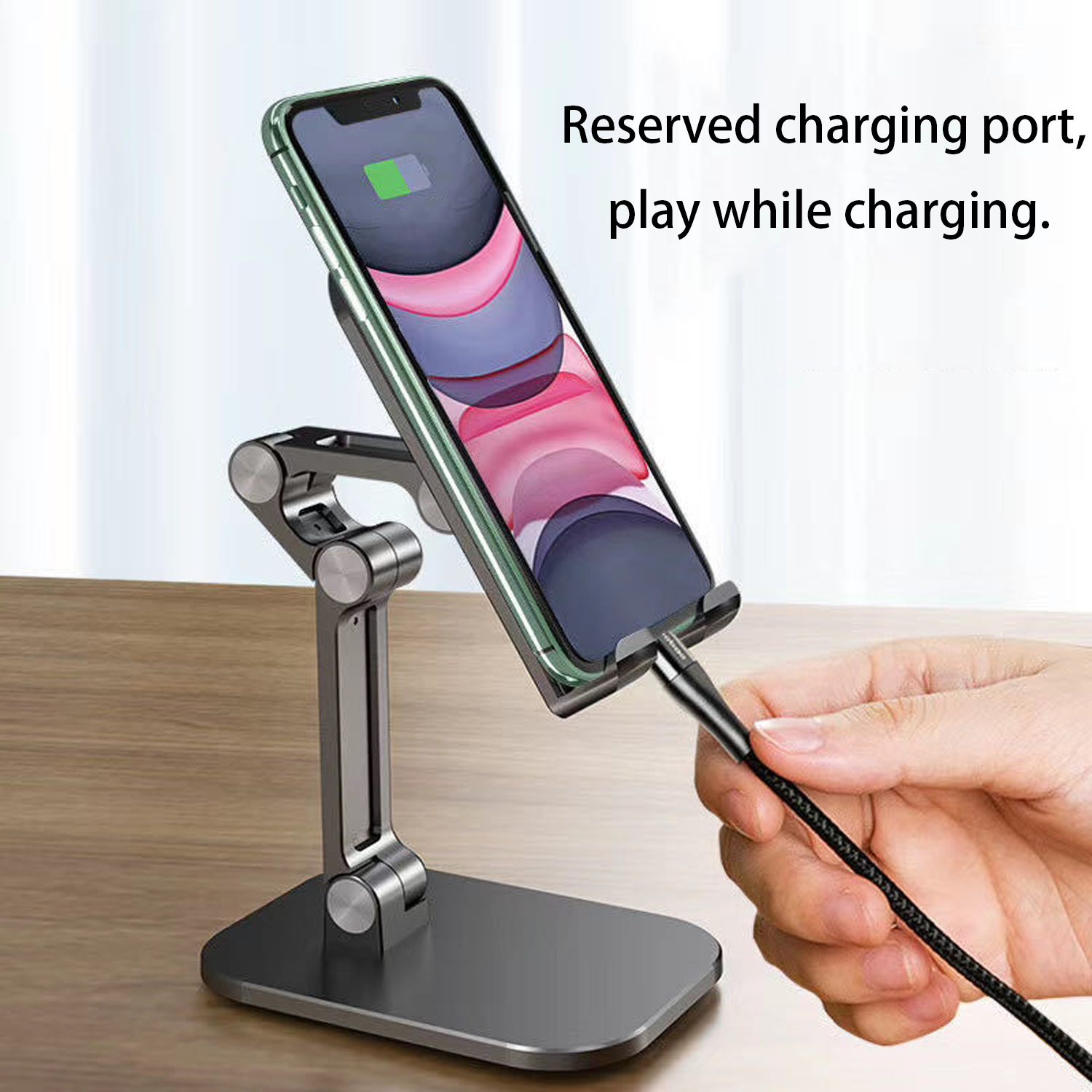 The Compact Plastic 360 Degree Rotating Phone Stand offers versatility and stability. Its height-adjustable and foldable design allows you to find the perfect angle. The sturdy triangular base prevents wobbling, ensuring safety. With a charging port at the bottom, you can charge devices without removing them. Suitable for tablets and phones, this stand enhances your experience for watching videos, attending meetings, or reading, providing a secure and user-friendly setup for daily use.