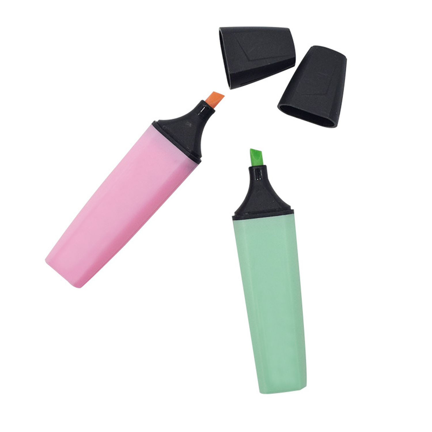Plastic fluorescent markers with a black cap and bright ink for effective highlighting. The chisel tip offers dual line width.