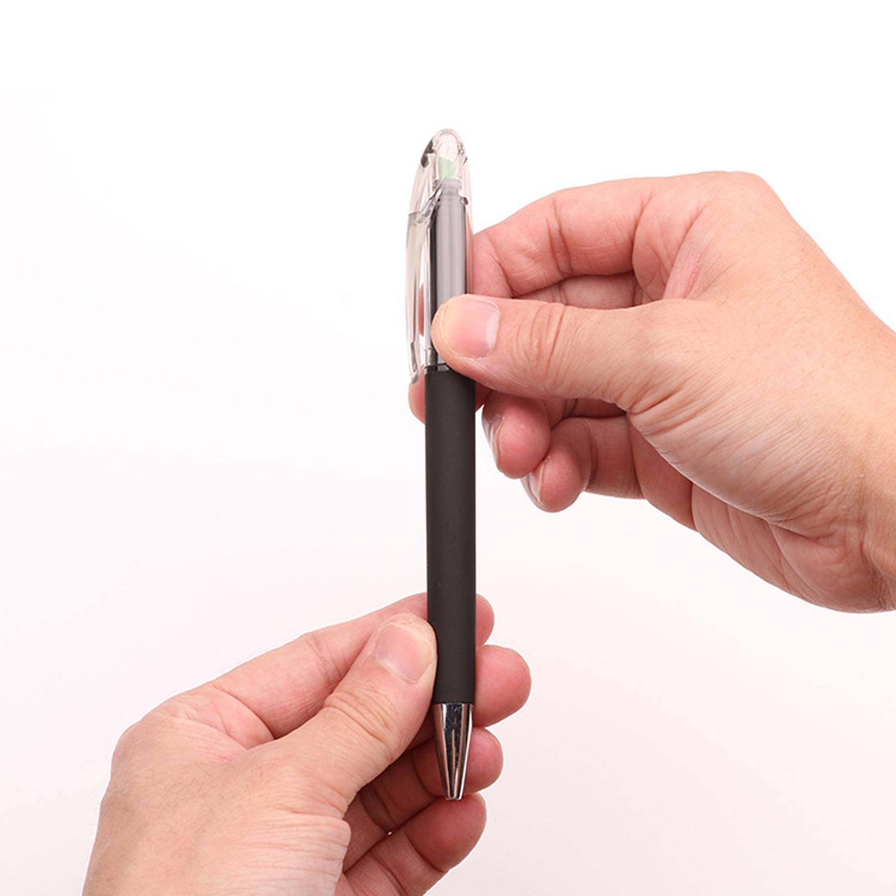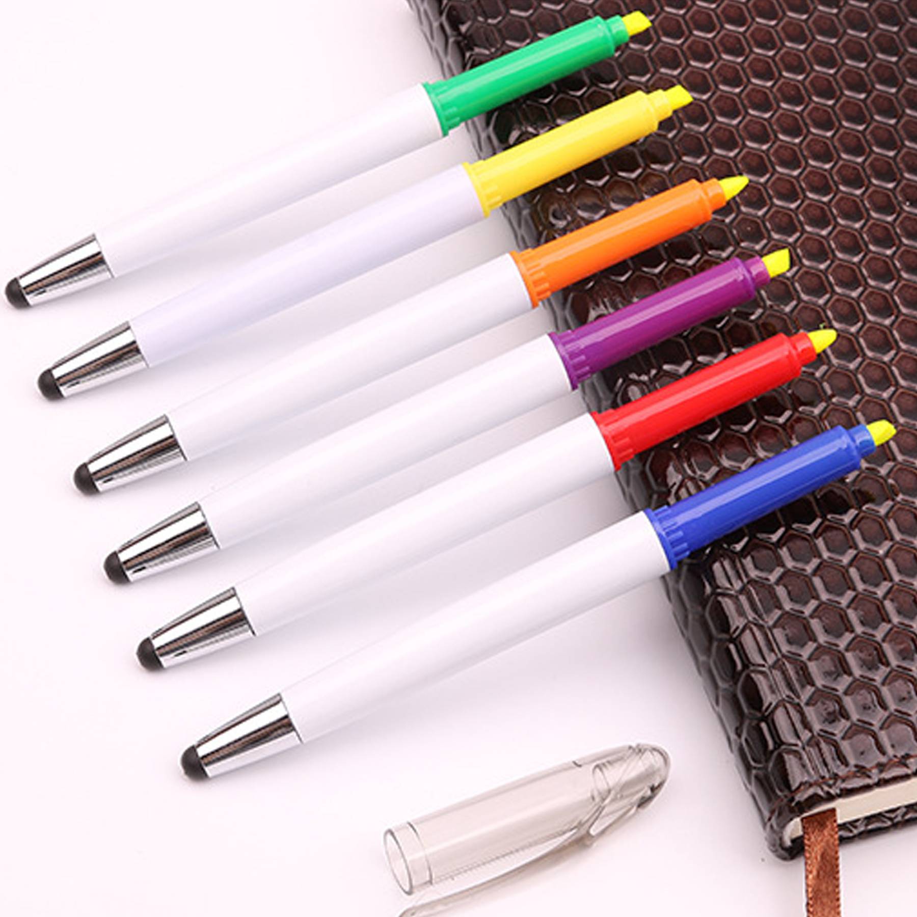 3-IN-1 COMBINATION: Dual tip allows color highlighting from one end, and Stylus for Touchscreens + Black Ink Writing from the other. Twist the rubber grip to extract ballpoint, twist back to retract the ballpoint and use the rubber tip for all touchscreen devices! Flip the pen to use the highlighter!