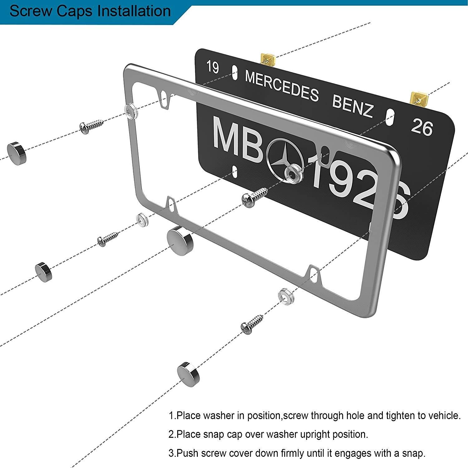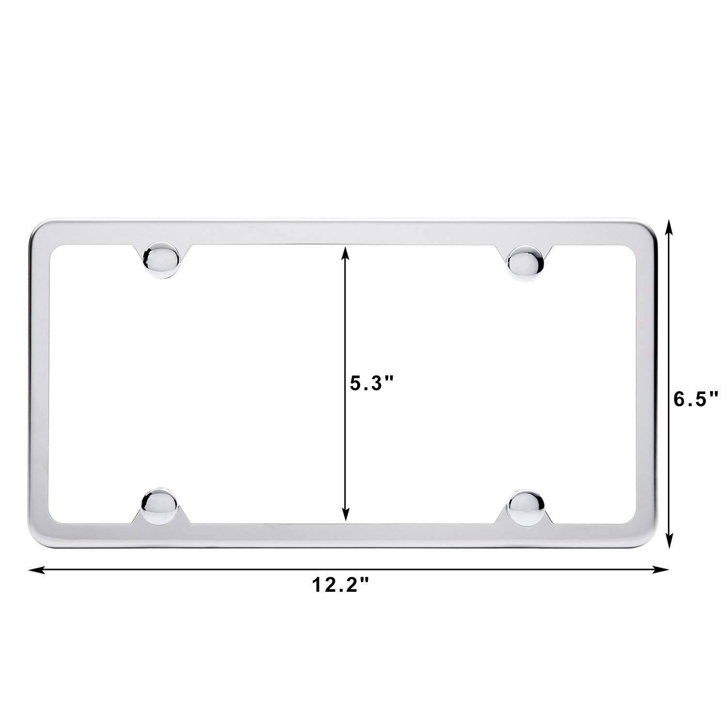 The 2 hole frame is made of aluminum material, and the surface is covered with 100% real carbon fiber cloth. Grinded and polished by hand through 16 procedures, glossy finish with UV Protection clear coat to protect frame. Heavy duty aluminum metal frame will withstand Car Washes, anti-corrosion, anti-rust, weather resistance, can well protect the license plate rust proof. Comes in 1 pack for front bumper or trunk license plate.