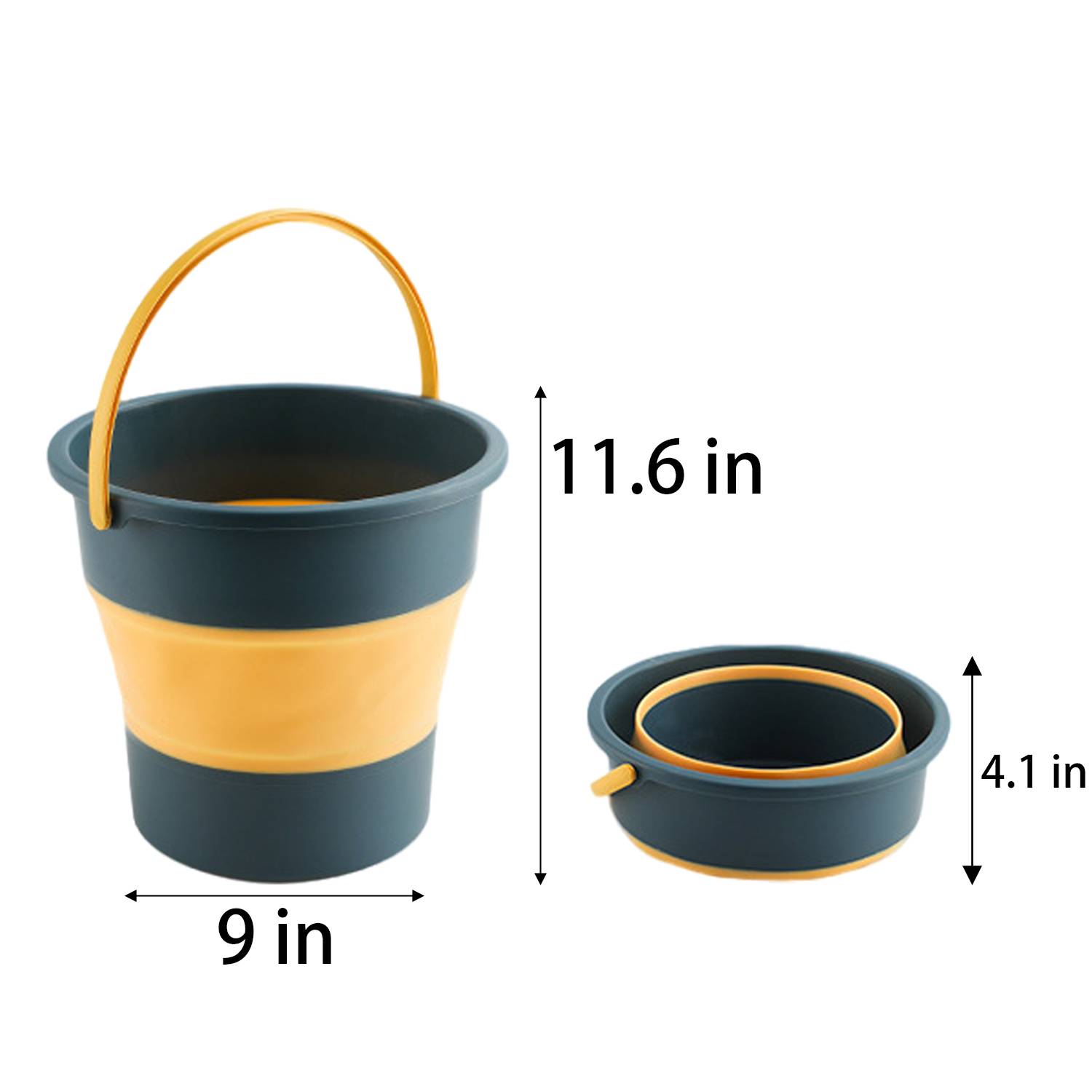 This collapsible bucket is made of durable PP+TPE material, combining strength with flexibility for versatile outdoor and household use. When expanded, it measures 9.1 inches in diameter and 11.6 inches tall, collapsing down to just 4.1 inches for compact storage – perfect for travel. Weighing 1.17 lbs, this lightweight yet sturdy bucket features ergonomic handles for comfortable carrying and pouring.Available in three vibrant colors,it’s ideal for camping trips, car washing, fishing, gardening.