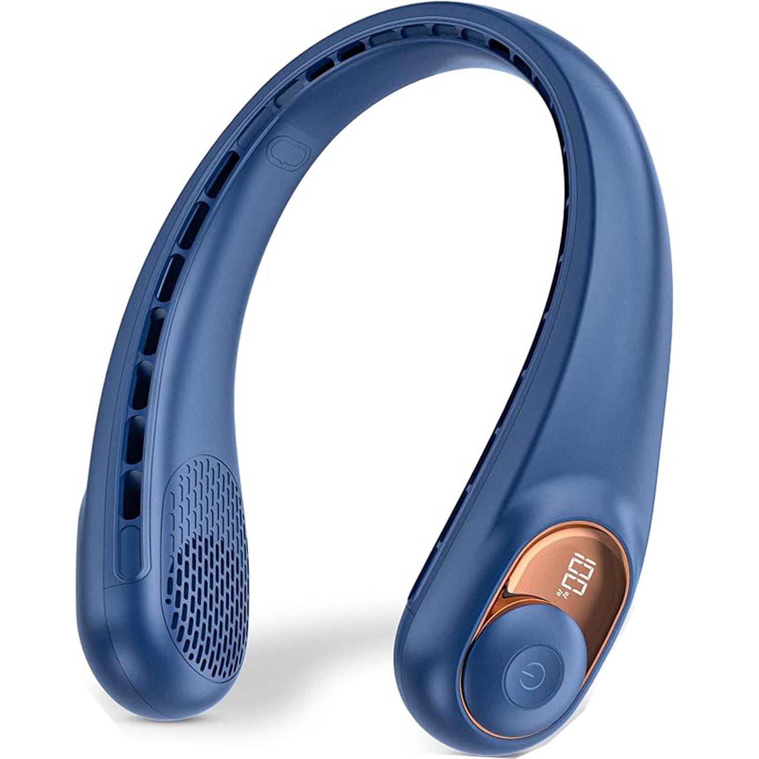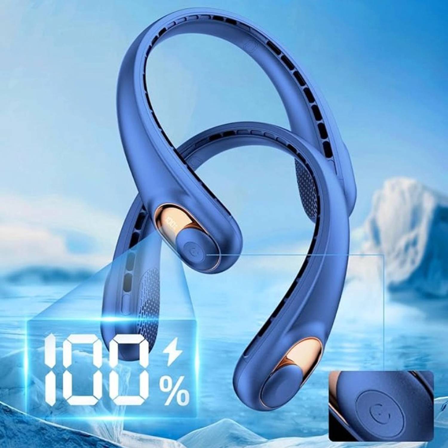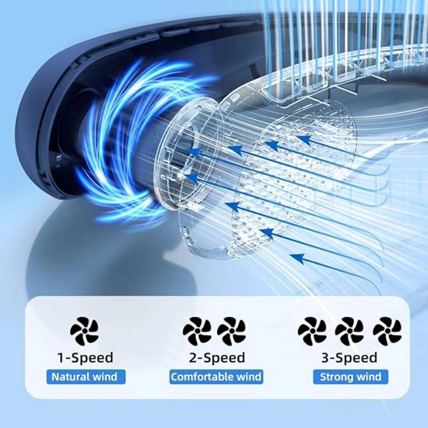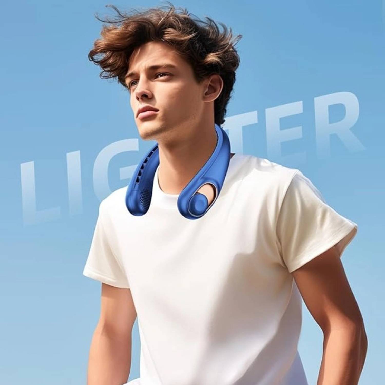 Lightweight hands-free neck fan with powerful quiet airflow, soft skin-friendly material, rechargeable, safe cooling for outdoors.