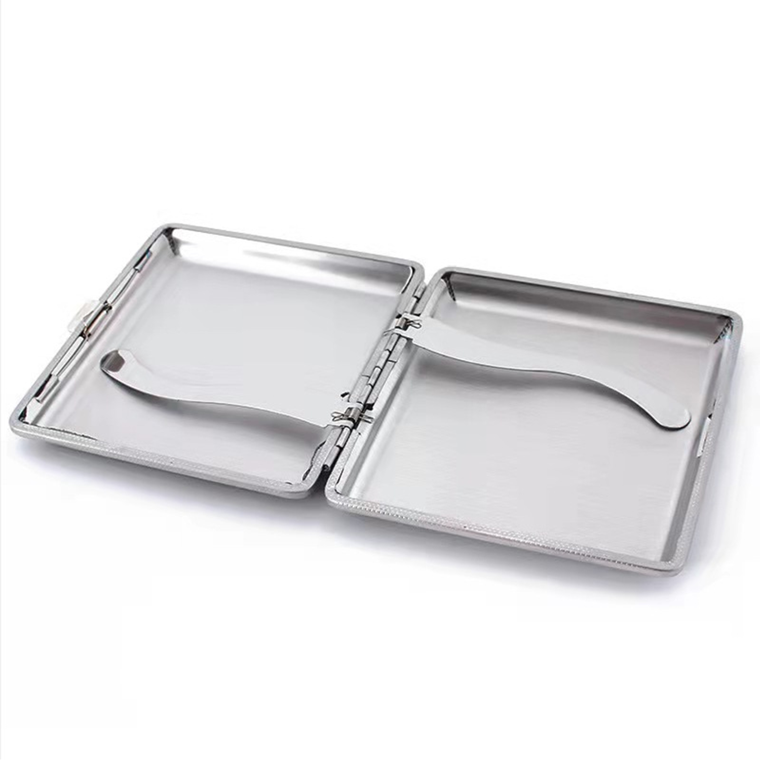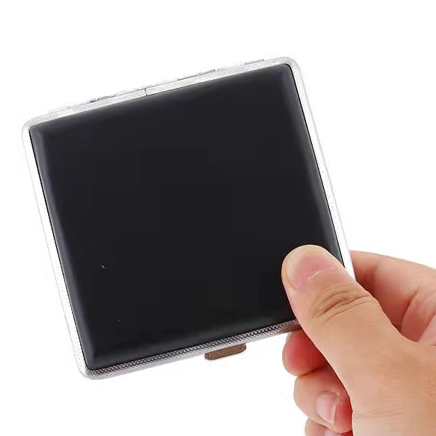 Exterior is made of PU leather and the interior is made of metal, surface is very smooth and the structure conforms to ergonomics.This size is 3.7 x 3.8 x 0.7 inches, suitable for regular size of cigarette, moisture and pressure prevention, can hold 20 cigarettes. Using mechanical switches, double sided spring clip open. It can be used in patio, homes, offices, outdoors, balconies, bars, cafes, hotels, and more.