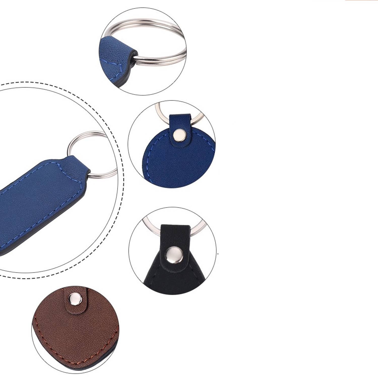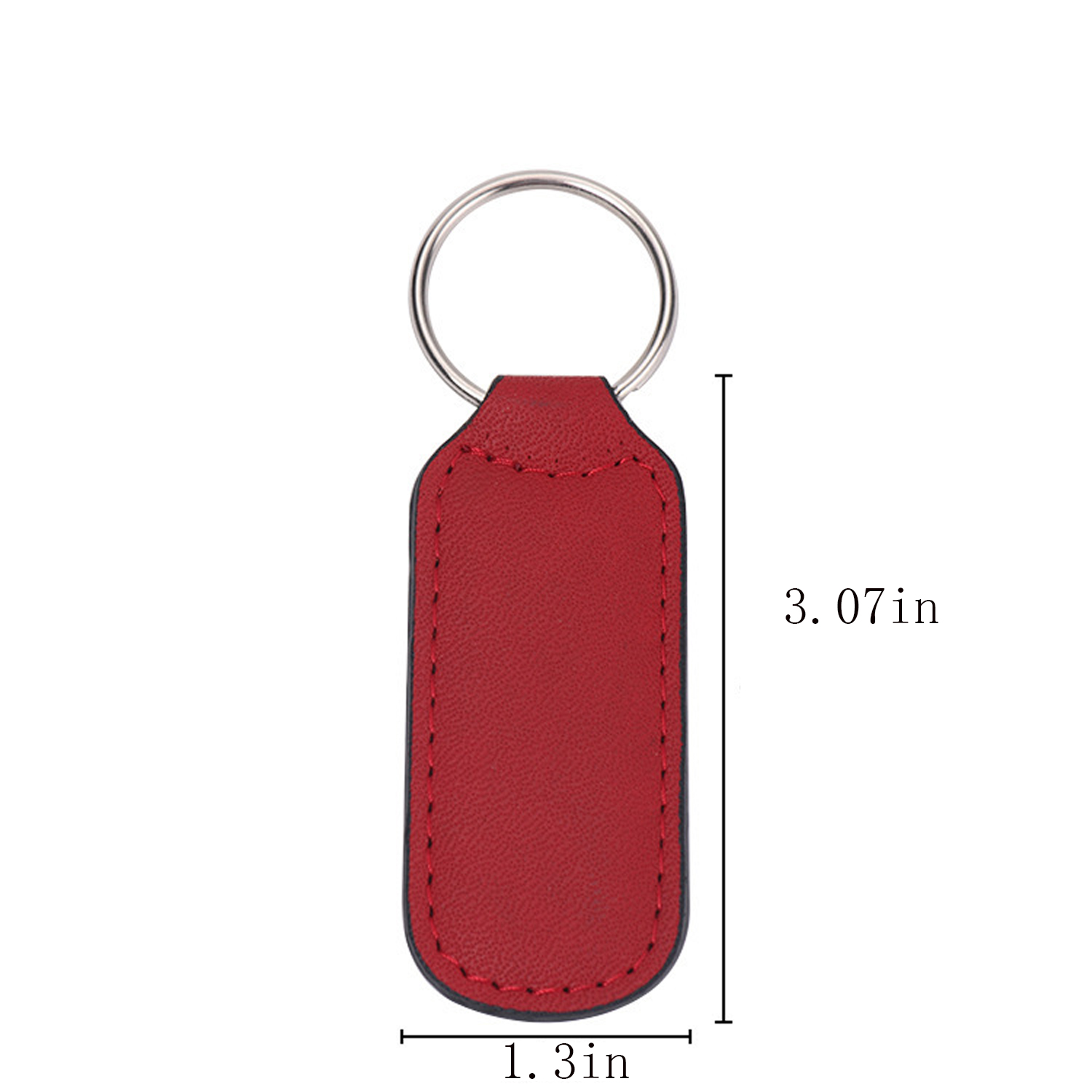 PU leather keychain (3.1×1.3in), double stitched. Sturdy metal core, smooth feel. Non-toxic, safe. For keys/bags.