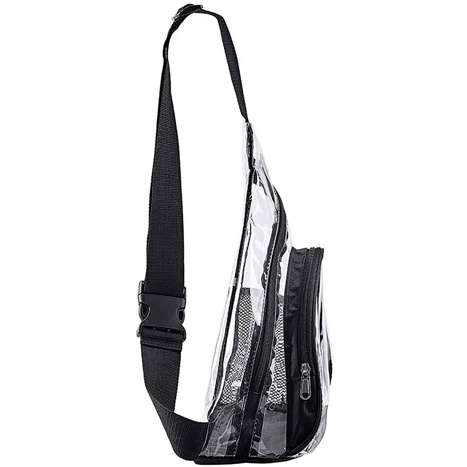 Crafted from long-lasting and eco-friendly PVC plastic, this transparent crossbody backpack is built to withstand the elements and keep your belongings safe and dry. Weighing in at a feather-light mass, it’s perfect for everyday use and allows you to breeze through security checkpoints with ease. Whether you’re catching a concert or cheering on your favorite team at a packed stadium, this bag is the ideal companion to keep your essentials close at hand while complying with security regulations.