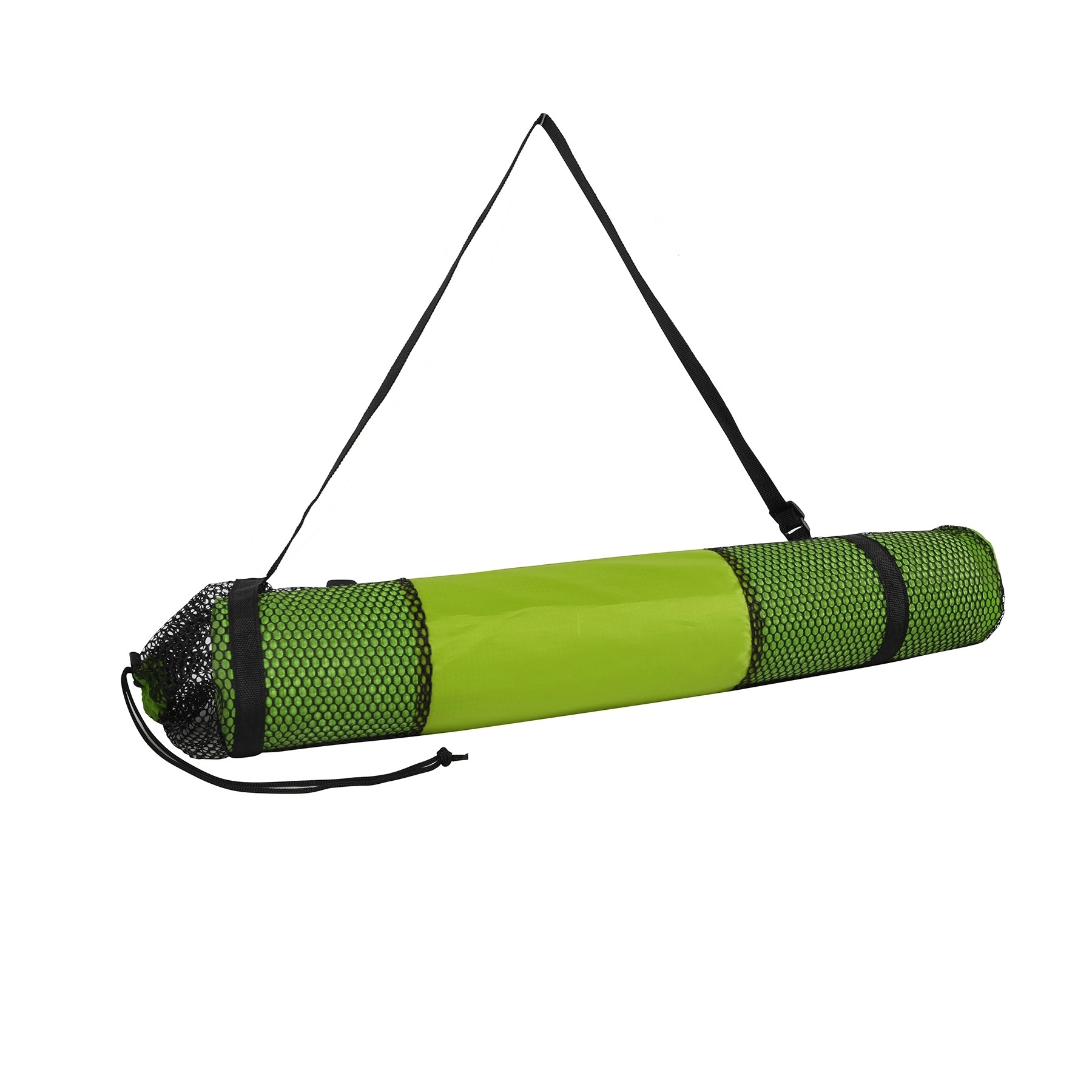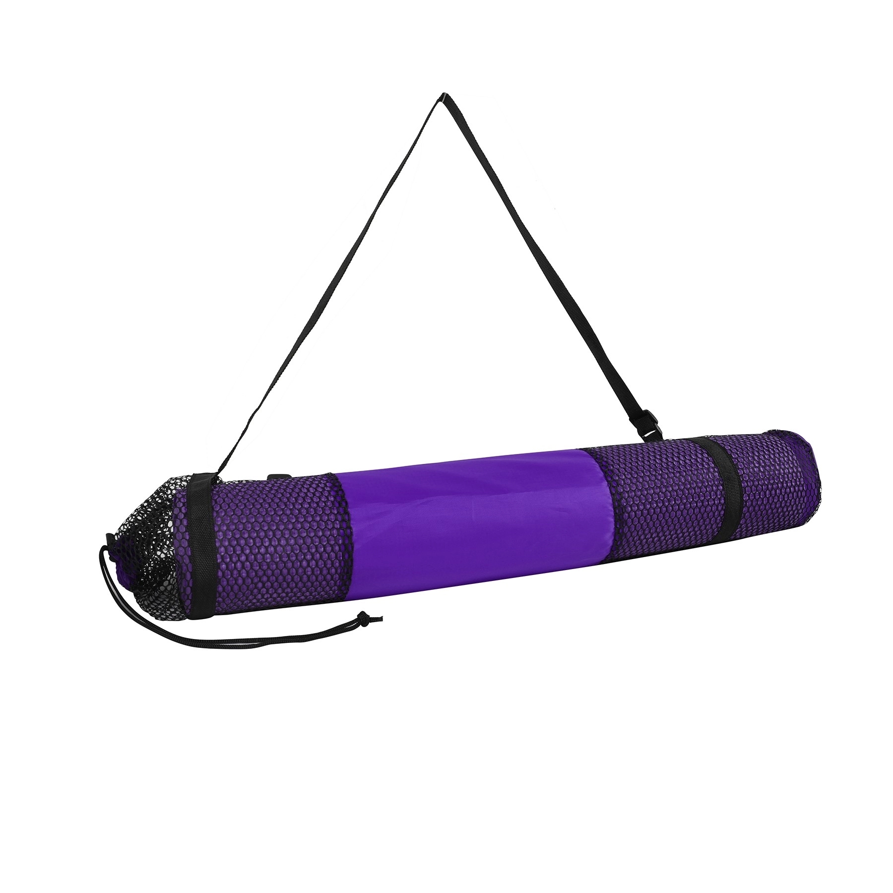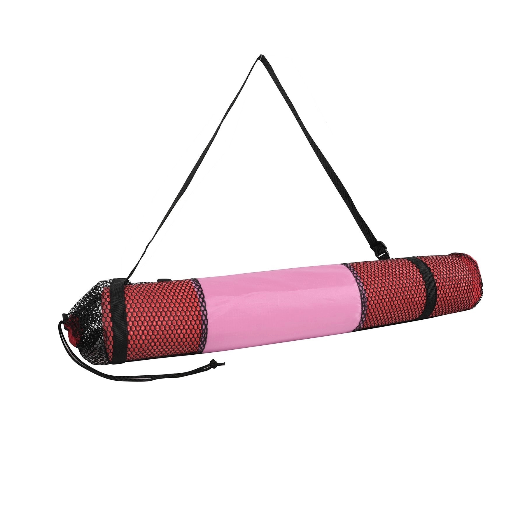 This 6mm PVC Yoga Mat is comfortably soft and has an anti slip base to keep a good grip for safe and secure movement. This yoga mat will shield the coldness of the floor and features moisture resistant technology to make it easy to wash with soap and water. It comes with a polyester / mesh bag with a convenient handle and drawstring for an easy way to transport the mat. We only provide printing on the bag, the mat is blank. 68″ W x 24″ H x 0.24″ D