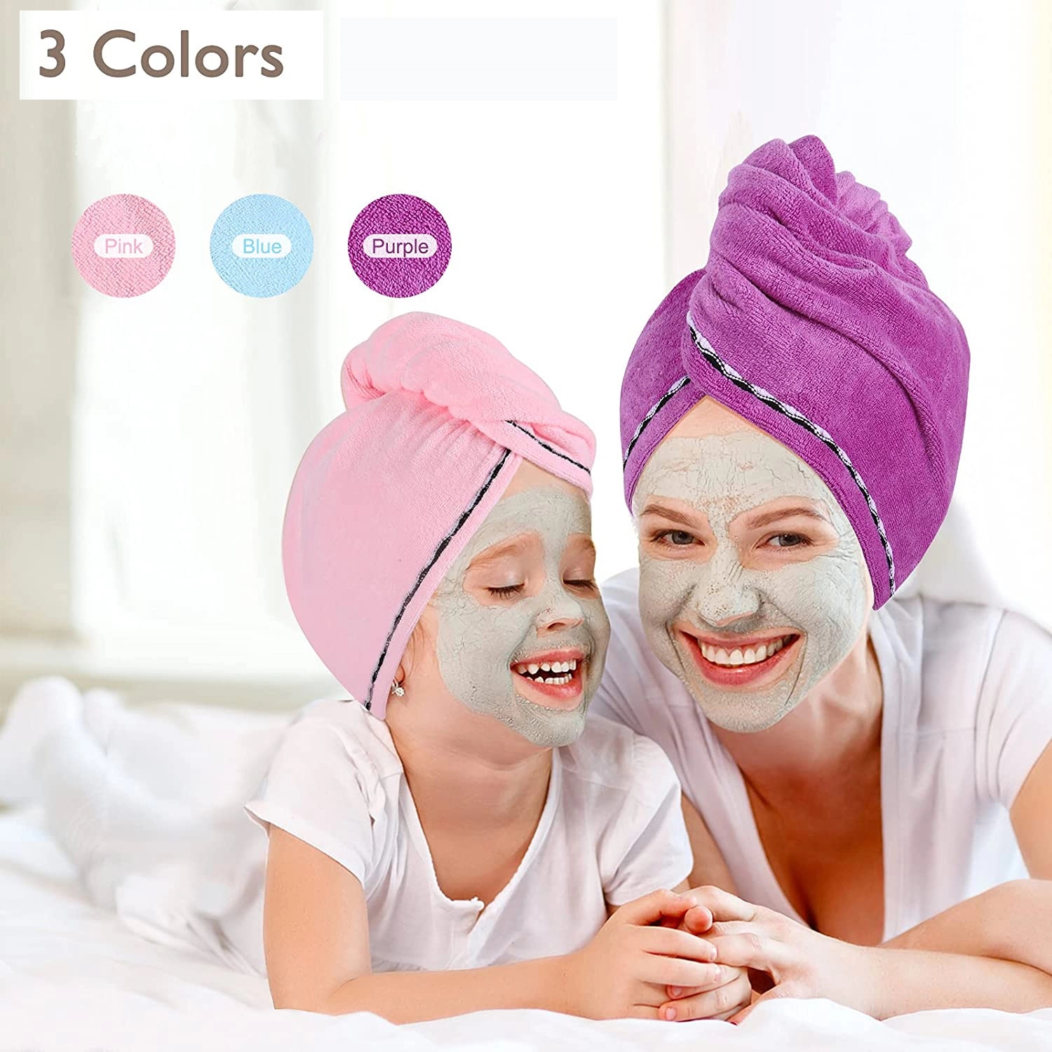 Our hair towel is made from a super absorbent material that is specially designed to gently and quickly dry hair. The hair towel allows you to wrap your hair snugly and prevent frizzy hair or split ends, they make a big difference! Plus, no heavy towel on your head means no neck pain or straining under its weight. Perfect for getting kids ready and for family travel. Wrap your little ones after bath, shower or beach time, and say goodbye to drips and wet pillow cases. You’ll save time, money, and energy on your wash! Accept custom logo.