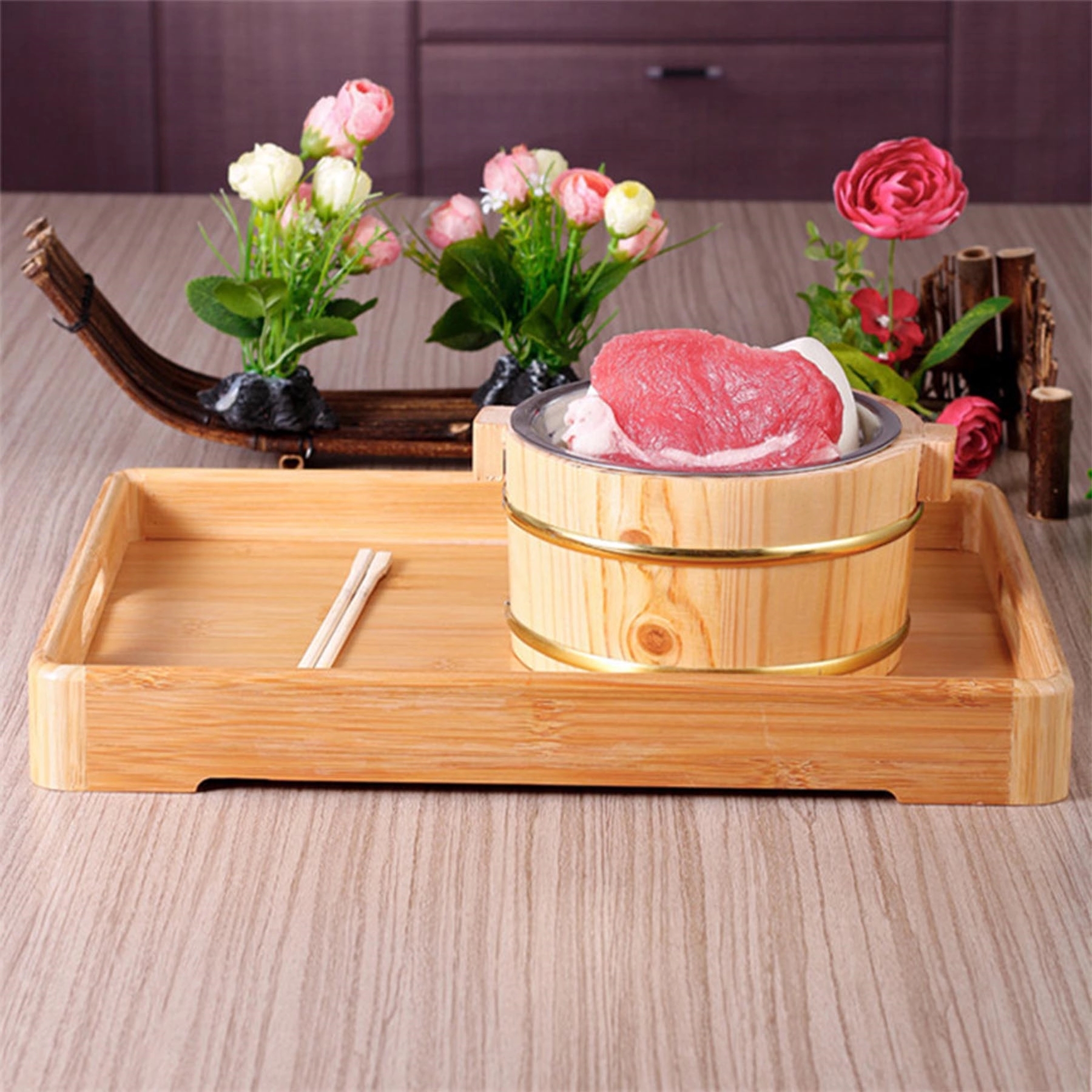 The tray making of durable natural bamboo known to be environmentally friendly, without Spray Paint.