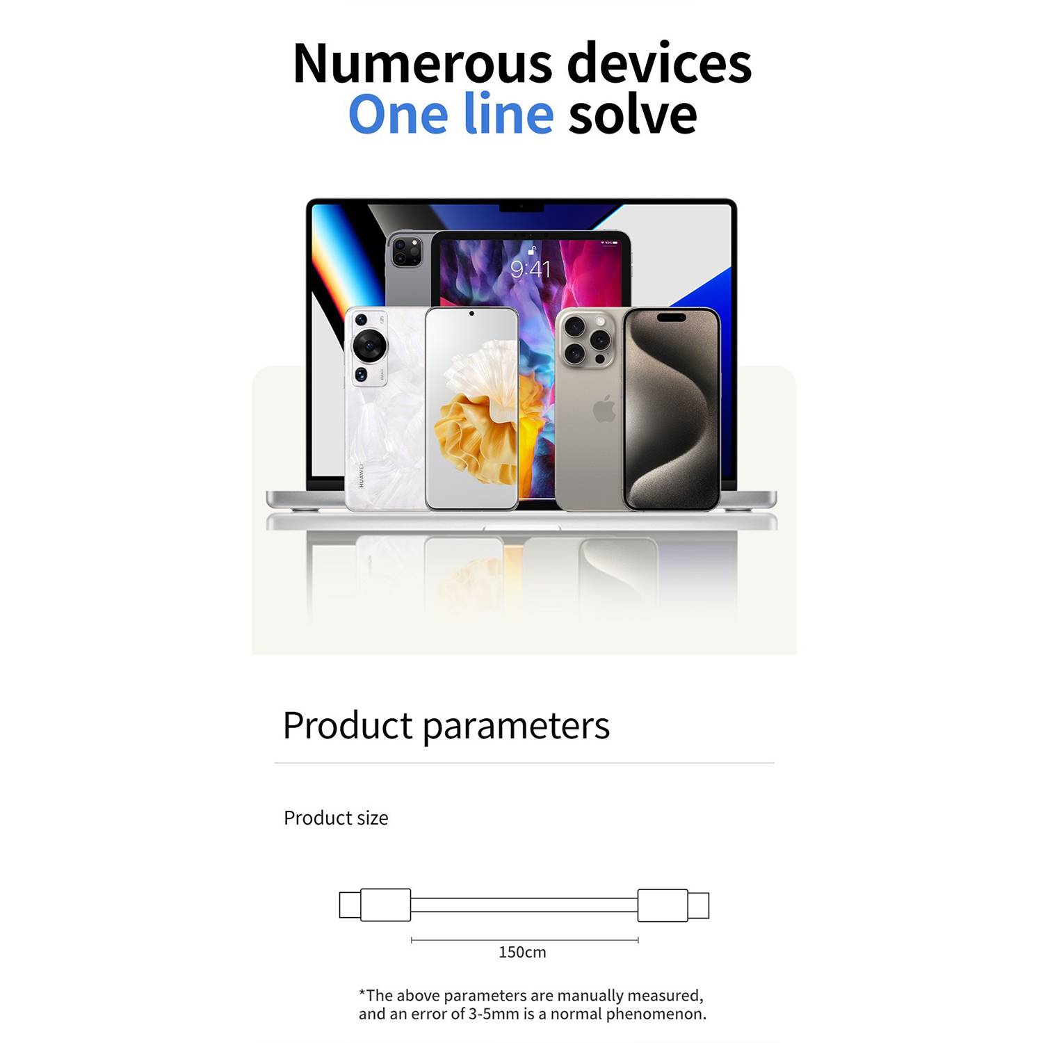 Charge any of your devices with the 4 in 1 charging cable, it combines 4 ports: USB A to USB C, USB A to L, USB C to L, USB C to USB C, one cable for all devices! 65W coiled Type C charger fast charging cable provides fast, efficient charging at home, in the office or on the go. Charging 85% in 35 minutes and Transferring large 1G files in 25s.