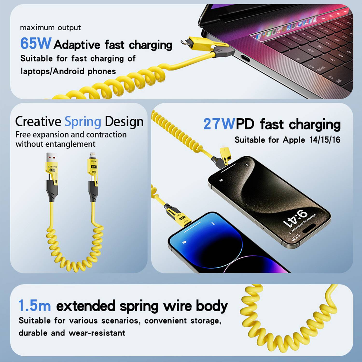 Retractable 4 in 1 USB Fast Charging Cable 65W