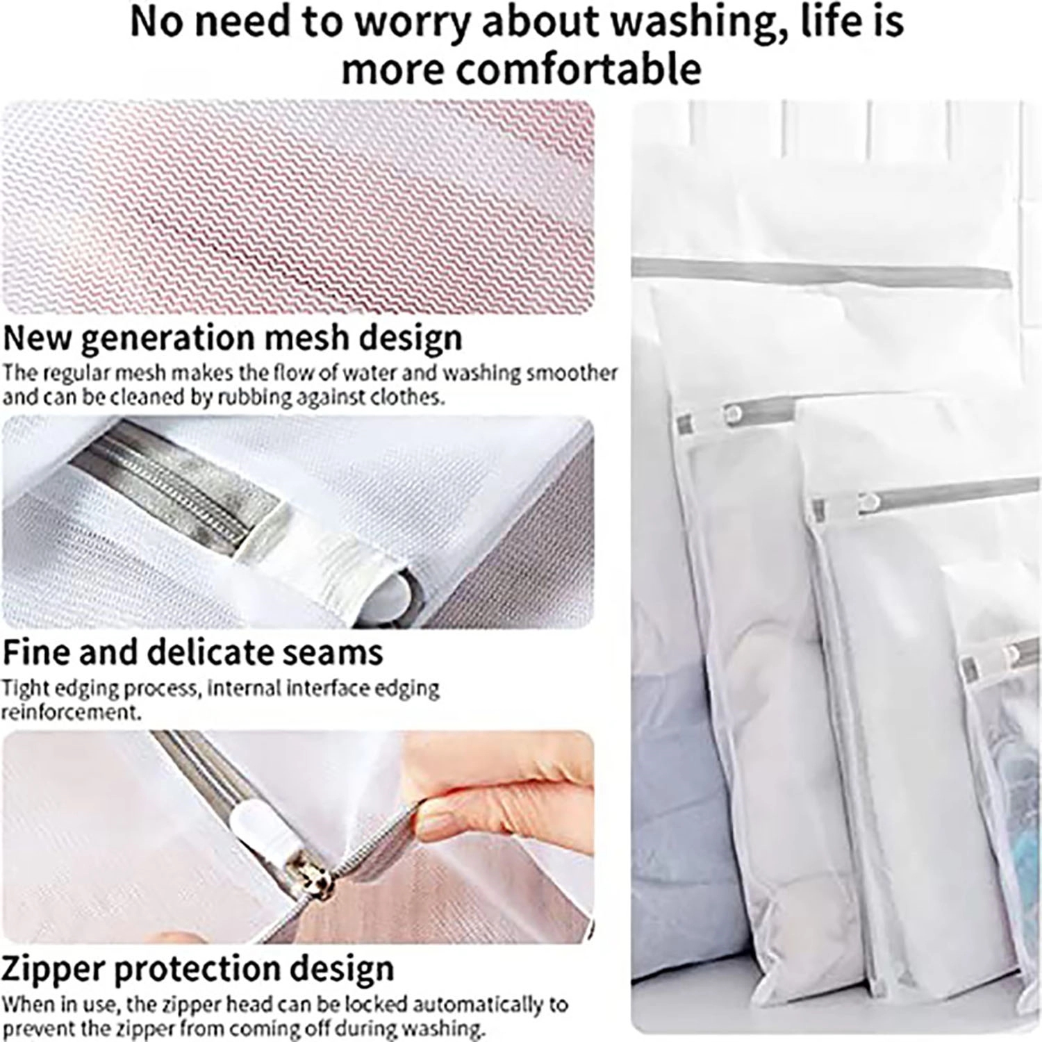 This bag is made of polyester mesh, a hidden zip can protect your clothes and the washing machine.