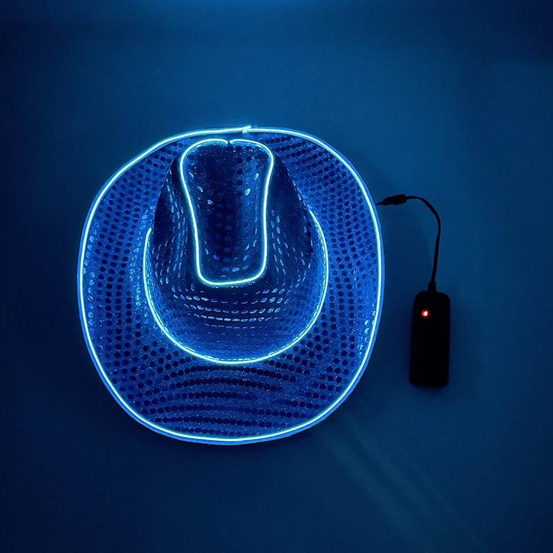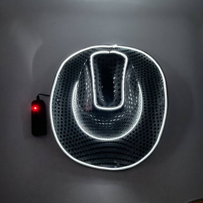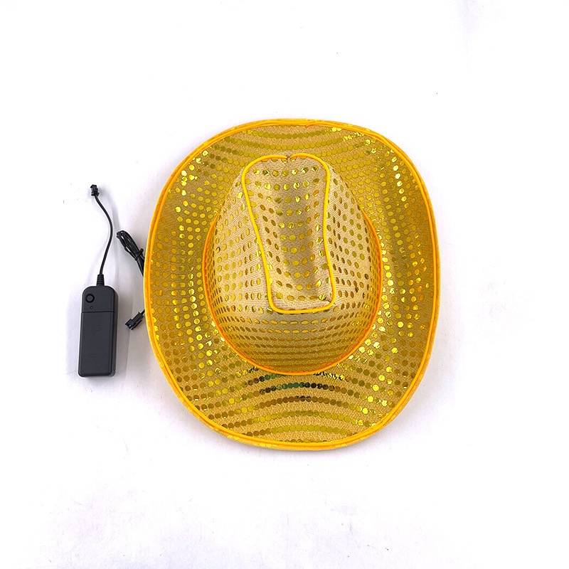 Wool/felt material, sequined cowboy hat design with lights, EVA composite shaped cowboy hat, suitable for wide use at parties, Halloween, and holidays.
