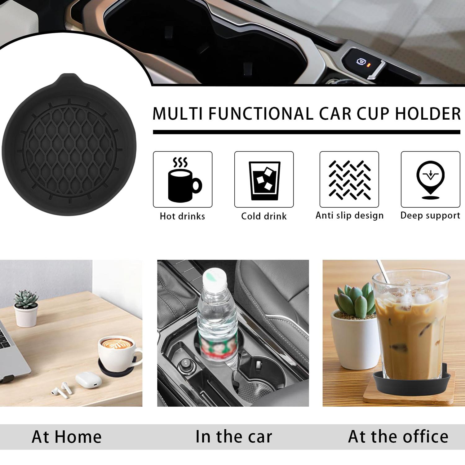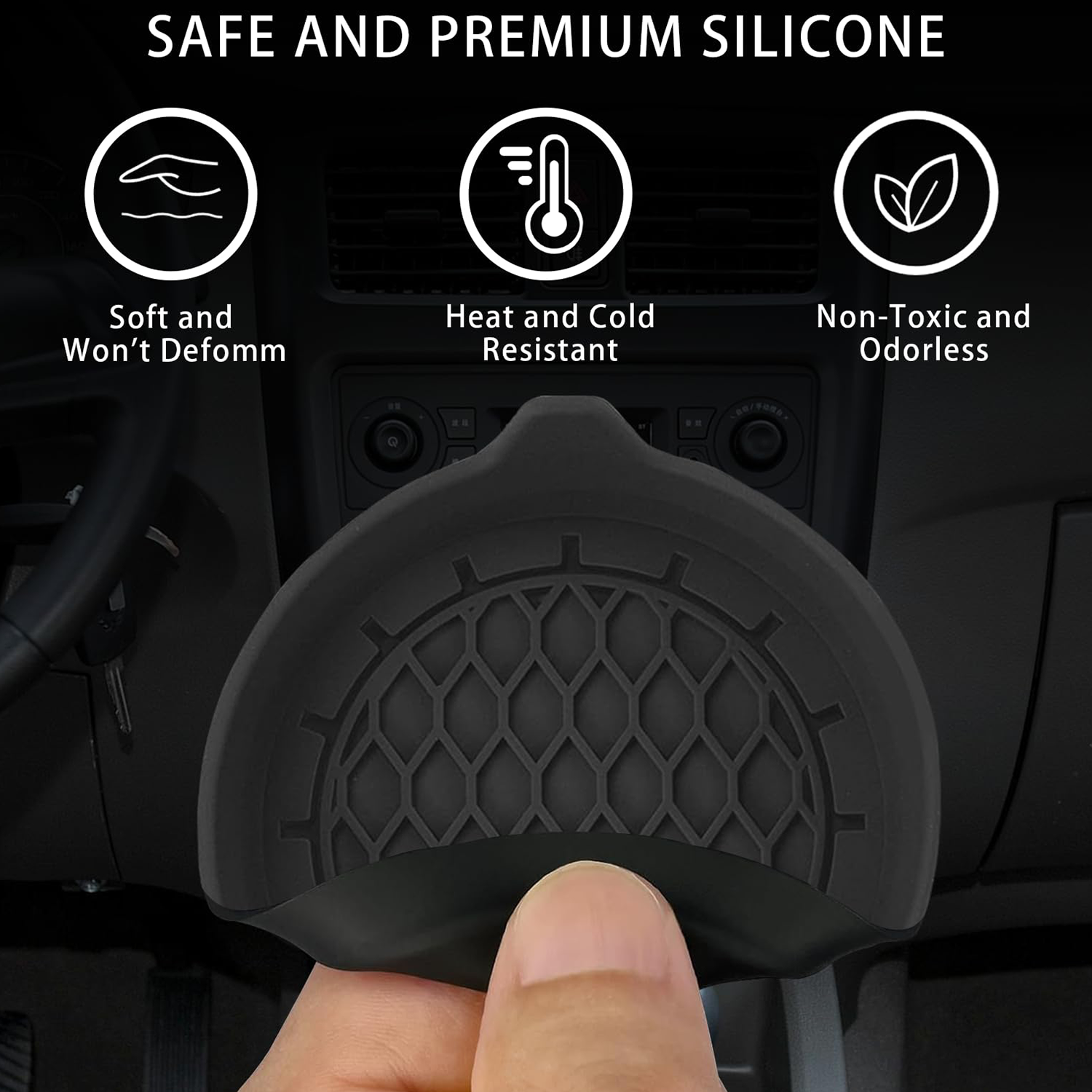 Car cup holder coasters are made of high quality eco-friendly silicone, which is non-slip, soft, durable and heat resistant. Reusable and long-lasting. Car cup coasters stand up to daily use without deforming, providing long-lasting protection for your car cup holder. Black coasters set of 4 to meet your daily use and replacement needs.Our car coasters for cup holders are designed to fit a wide range of car.