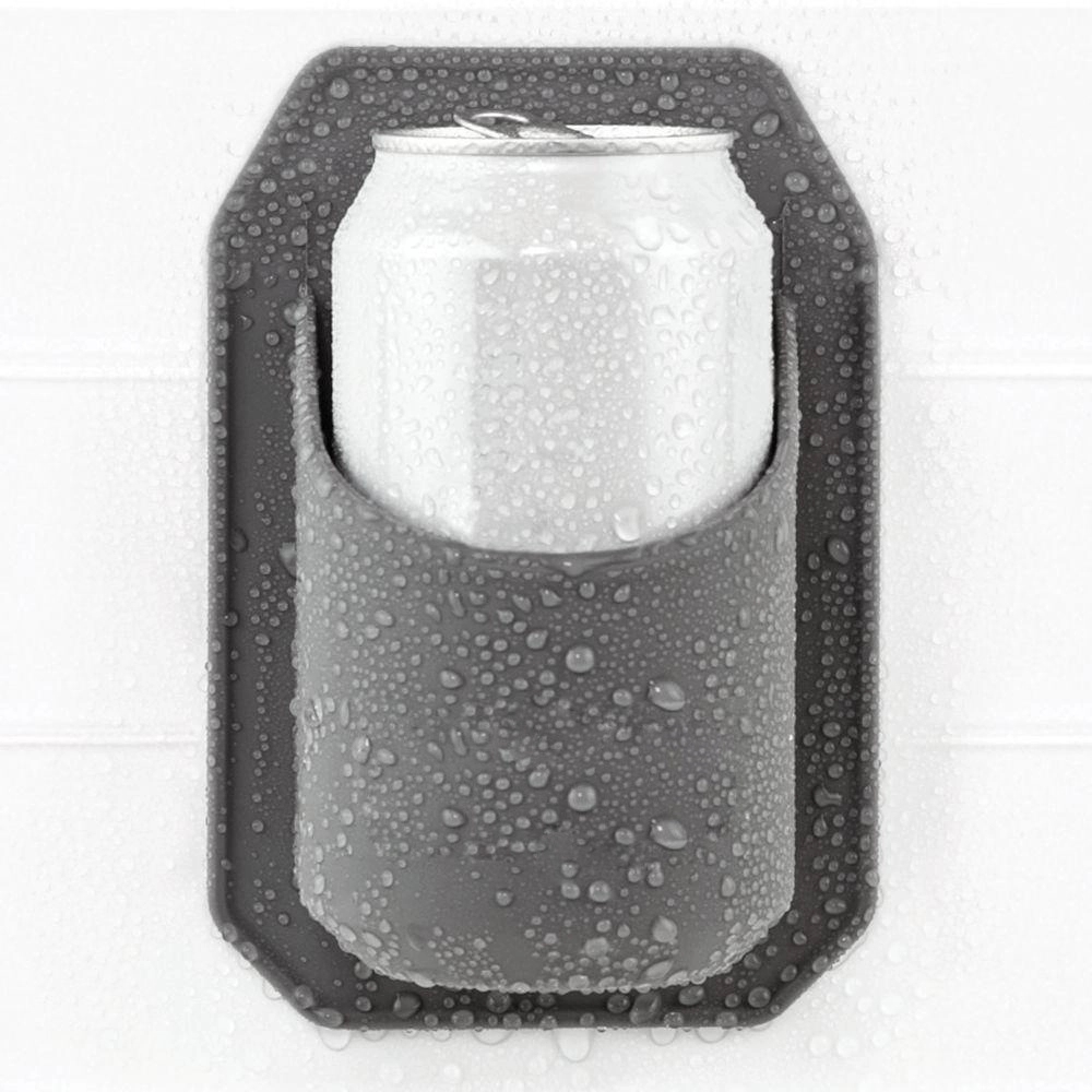 This is water-proof stick-on beer holder. Sticks to any slick surface like glass, mirror, marble, glazed shower tile or laminate and easily removes without leaving residue behind. Perfect for holding ice cold cans of seltzer + soda, too; not for use with glass cups or bottles.