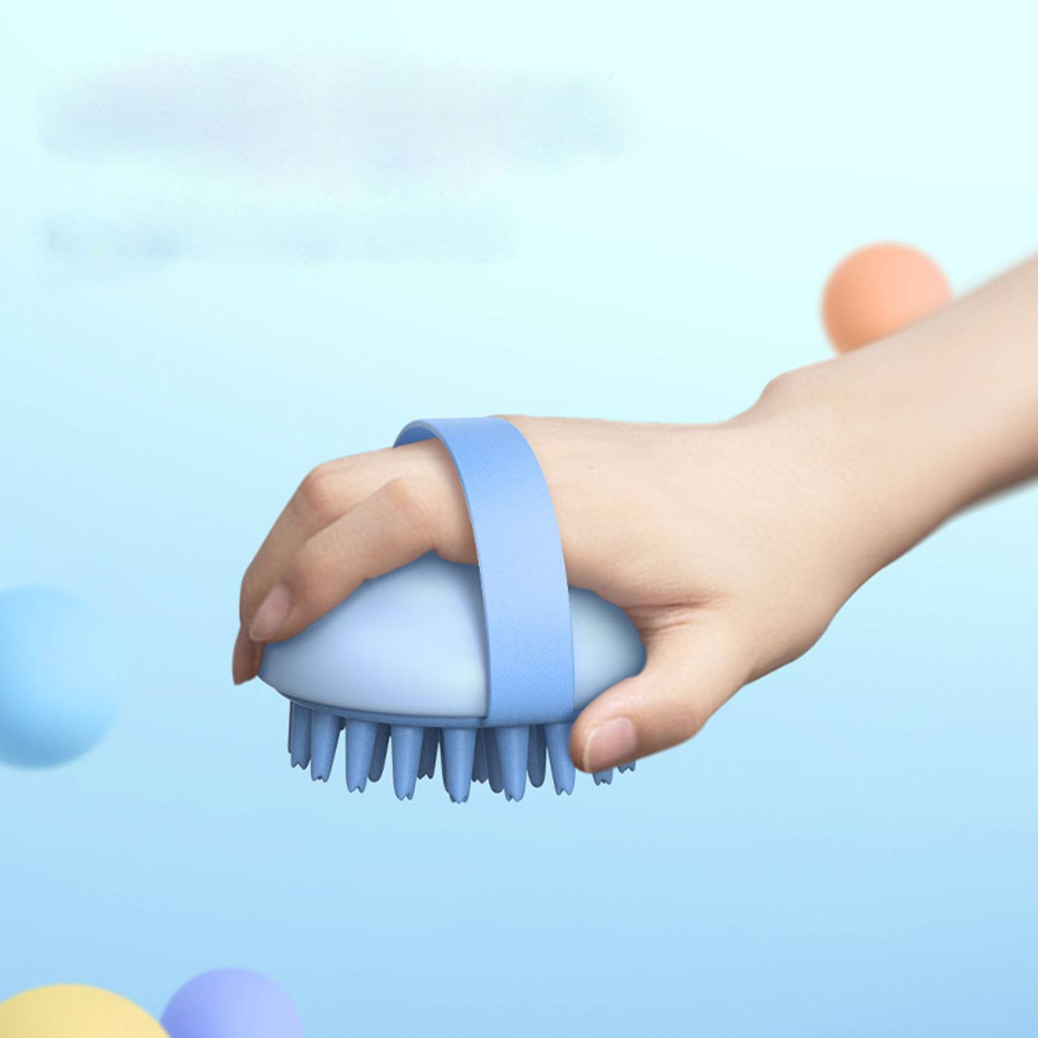 Soft silicone scalp brush gently cleanses hair and body, stimulates circulation, waterproof, hygienic, spa-like massage at home.