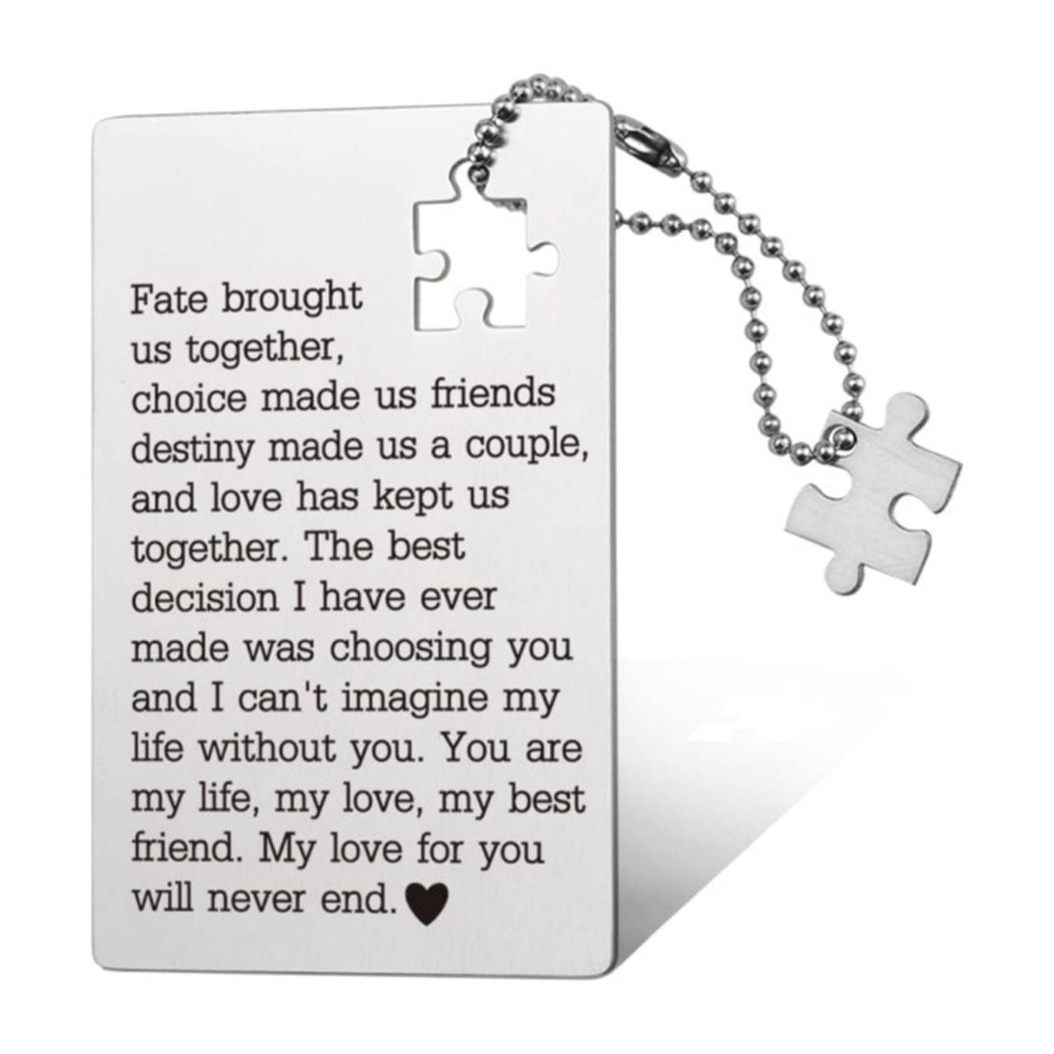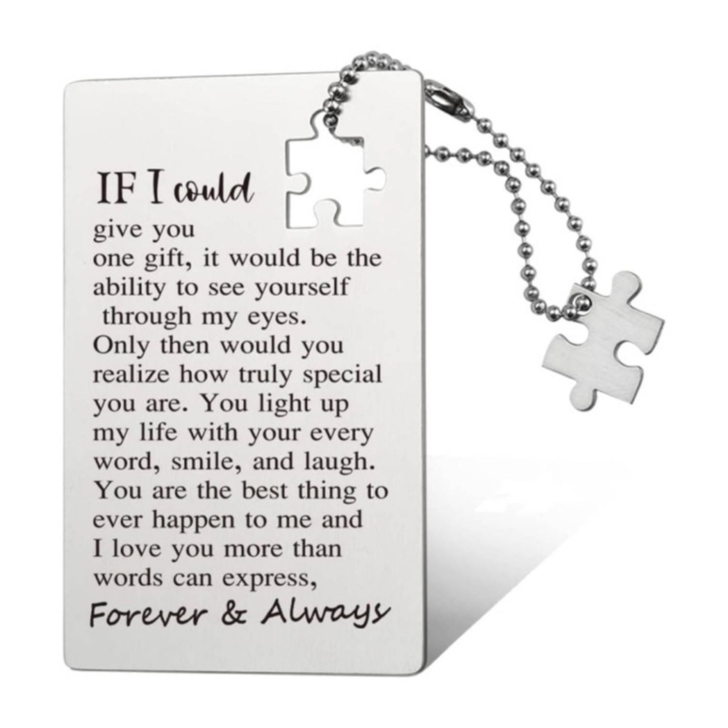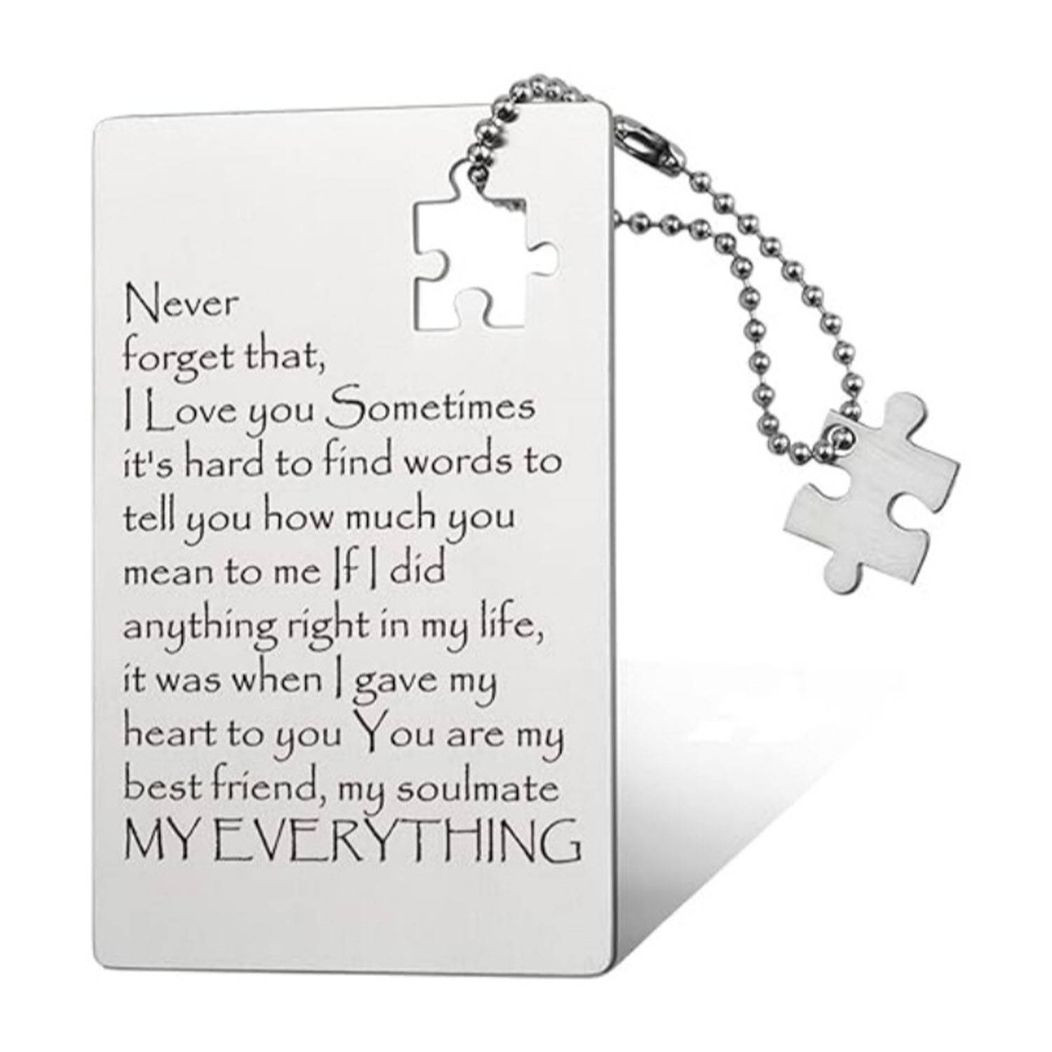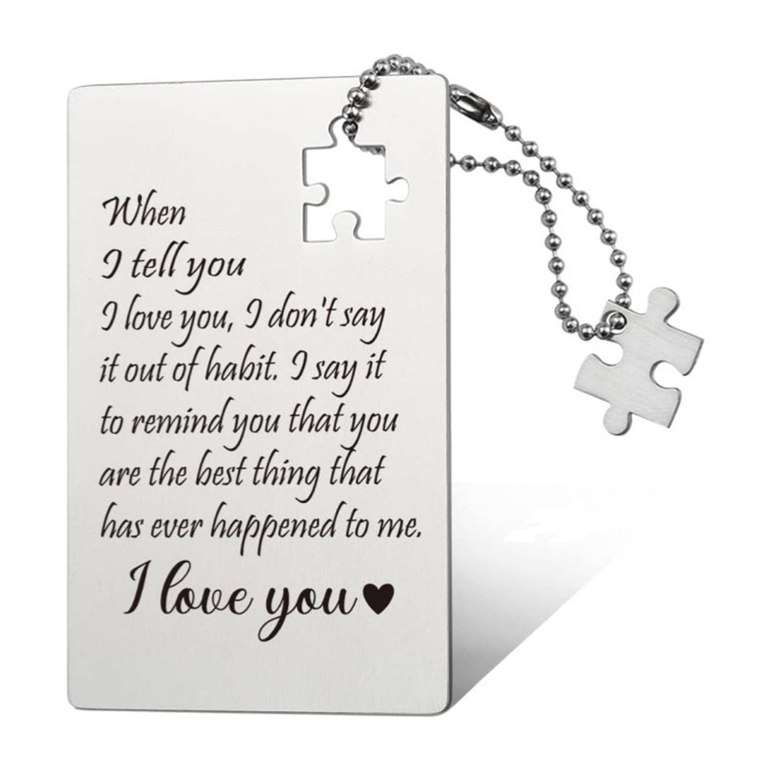 Made from sturdy yet lightweight stainless steel, this wallet insert card features permanent engraving that never fades. Designed to fit most wallets, it resists bending and discoloration, ensuring lasting durability. Its compact size makes it an ideal keepsake to carry your heartfelt message daily. Perfect for anniversaries, birthdays, weddings, Christmas, and Valentine’s Day, this card combines meaningful sentiment with practical design for any special occasion.