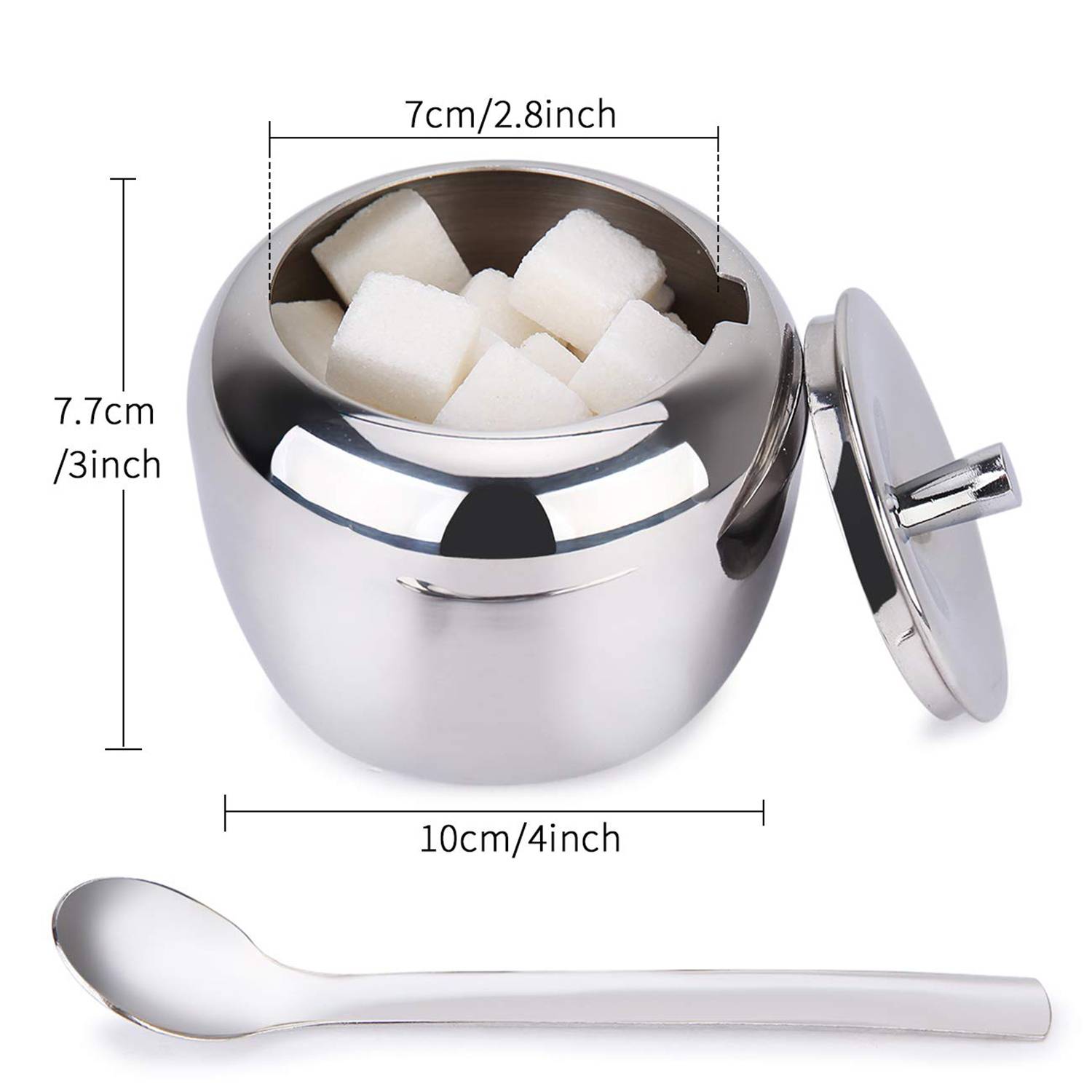 Sugar bowl for coffee is suitable for Home, Hotel, Cafe, Buffet, Party, etc. Perfect to Serve Sugar, Salt, Pepper, Spice, etc. Free return,refund for any unsatisfactory order.