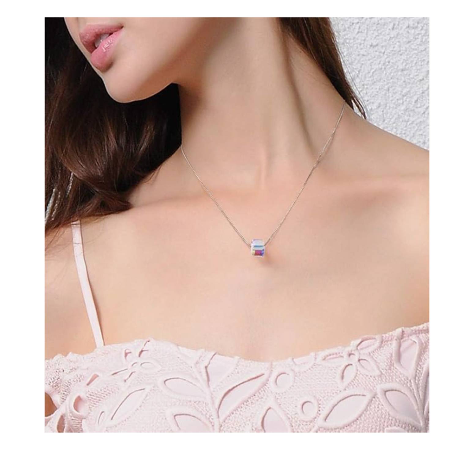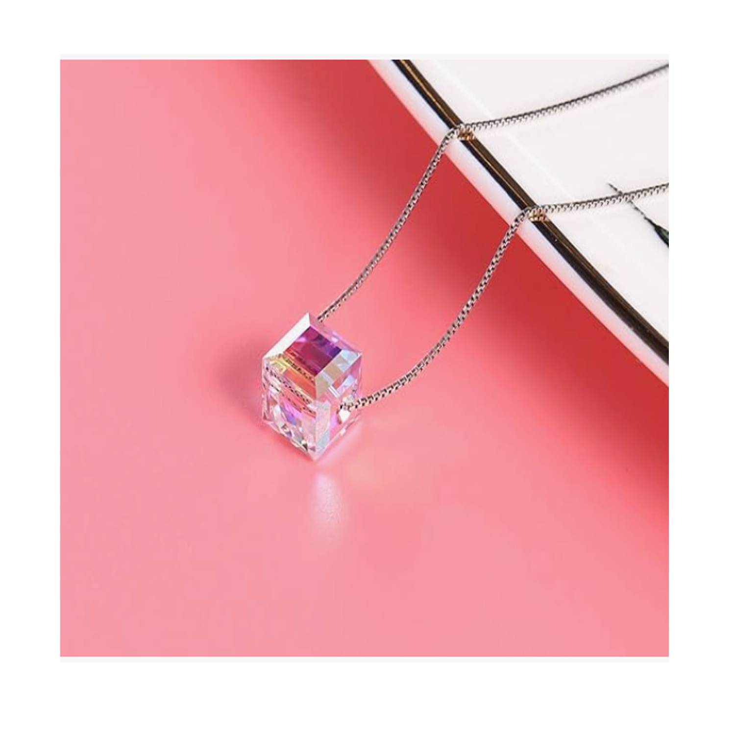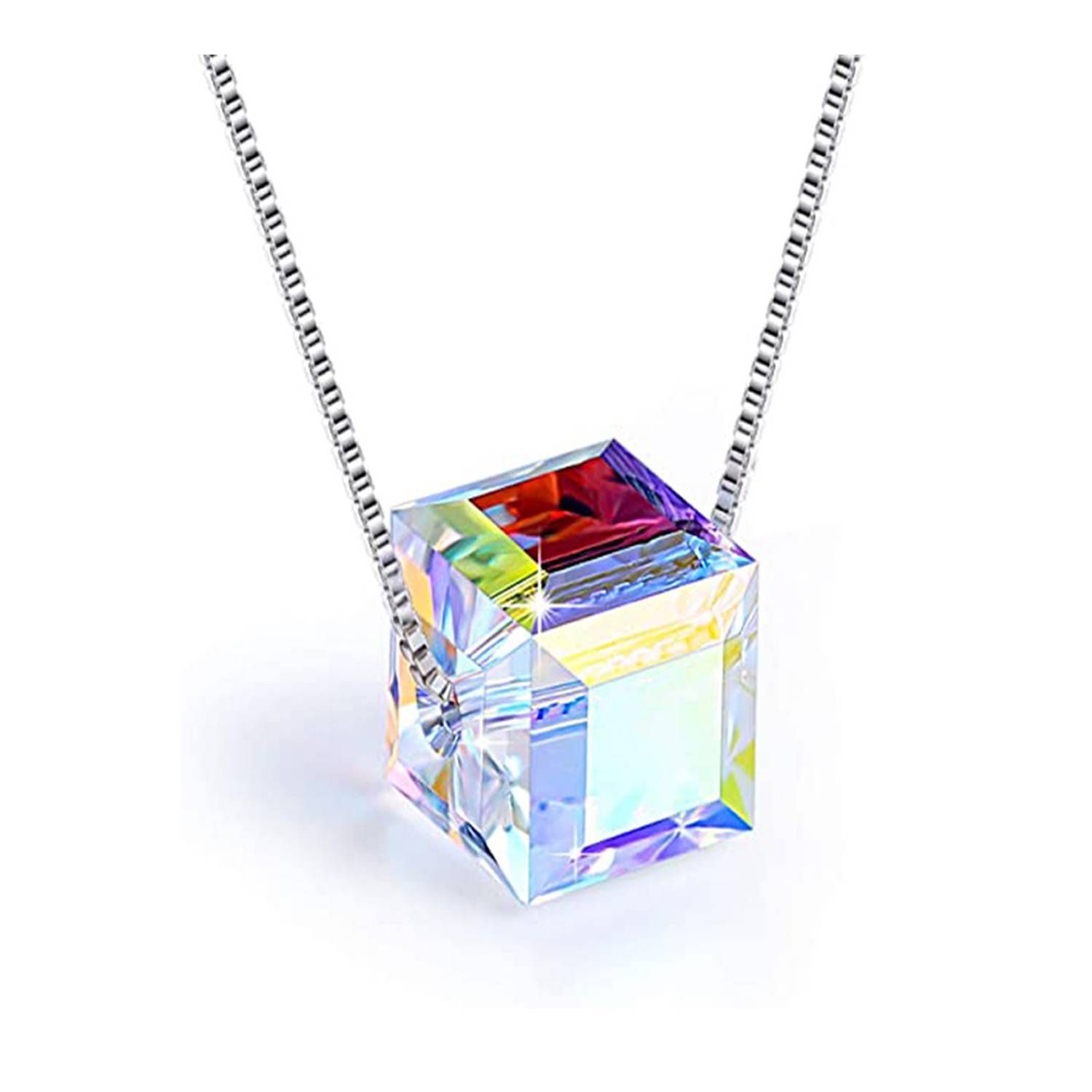 Sugar Cube Crystal Necklace, 0.4×0.4 inches, unique crystal pendant adds elegance and sparkle.