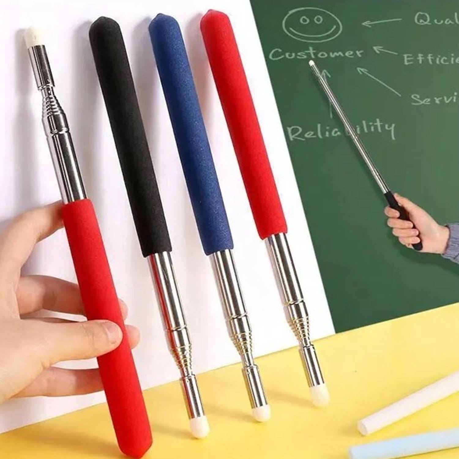 Made of 304 stainless steel, this retractable pointer is durable and can be extended to 47.24 inches in length. It shrinks to only 8 inches and is easy to carry. It is suitable for traditional blackboards and electronic whiteboards, easily conveying key information without damaging the screen. The bright colors are stylish and atmospheric, making it a great gift for teachers. Whether it is a lecture, speech or teaching, it can provide ample space for efficient communication.