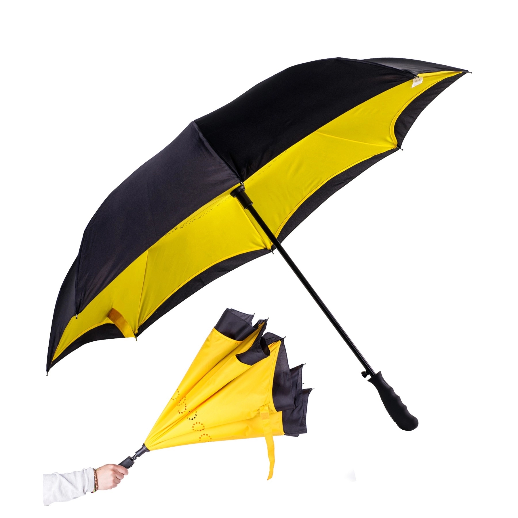 The A is A revolutionary design umbrella that pushes the water away when it closes.