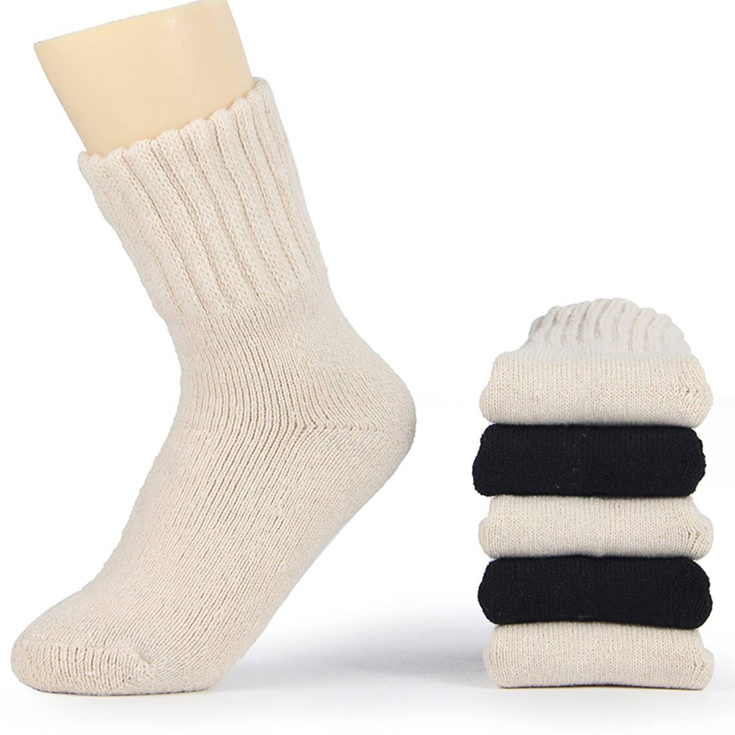 Unisex winter thick polyester socks provide warmth, comfort, cushioning, and support for indoor and outdoor use.