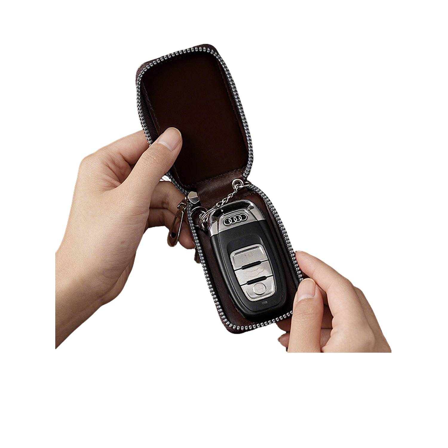 Universal PU Leather Zipper Car Key Pouch