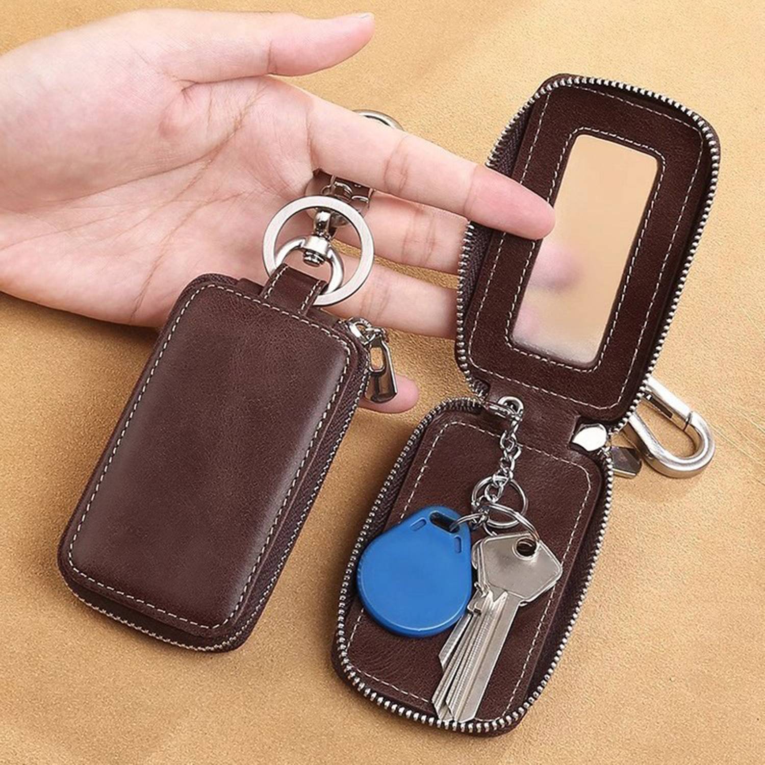 Crafted from PU leather, this zipper key pouch offers a sleek and practical way to organize and protect your keys. The secure zipper closure keeps items safely in place, preventing scratches or loss. Compact and lightweight, it fits easily into pockets or bags while providing a comfortable grip. Ideal for daily use, commuting, or travel, this pouch combines style with functionality, ensuring convenience and reliable storage.