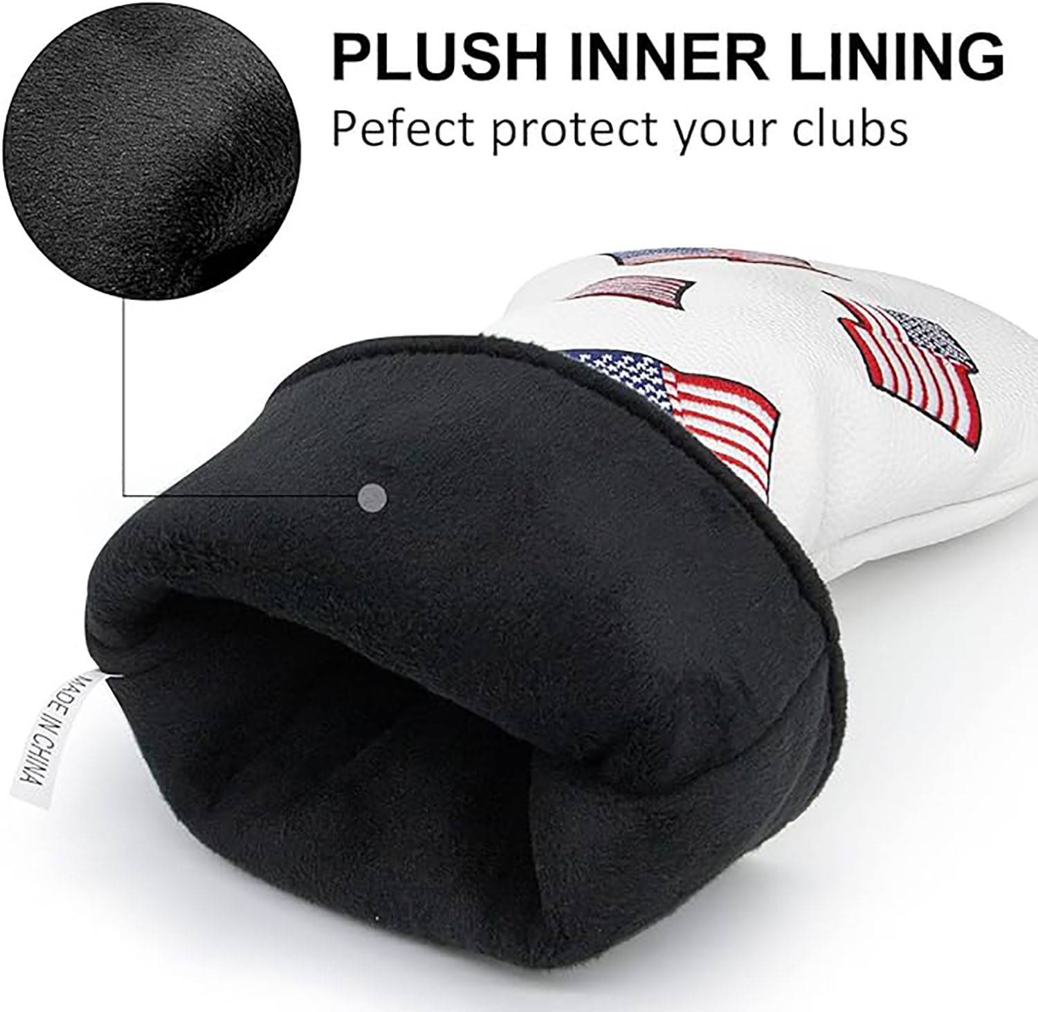 Patriotic golf wood headcover, synthetic, durable, elastic closure, dust-resistant, perfect for US golfers.