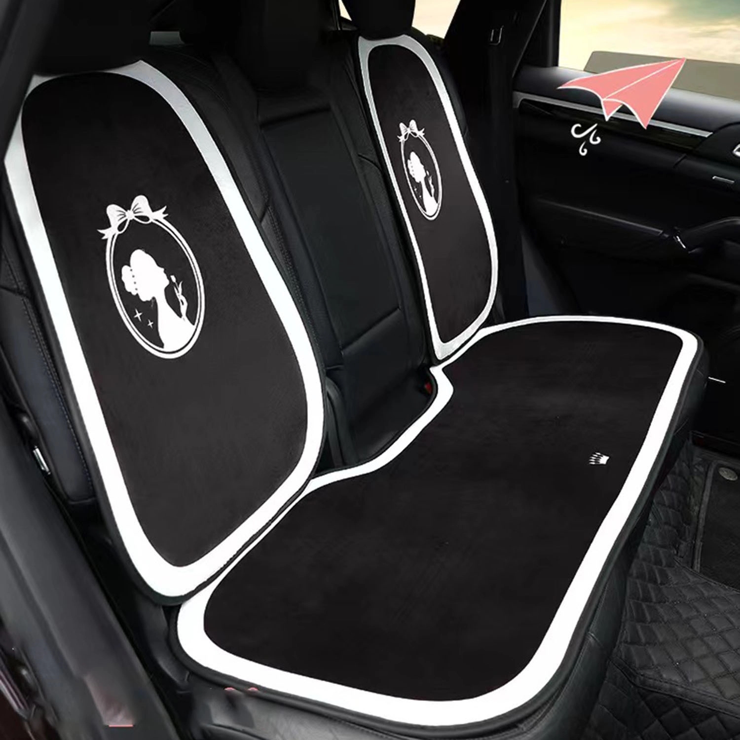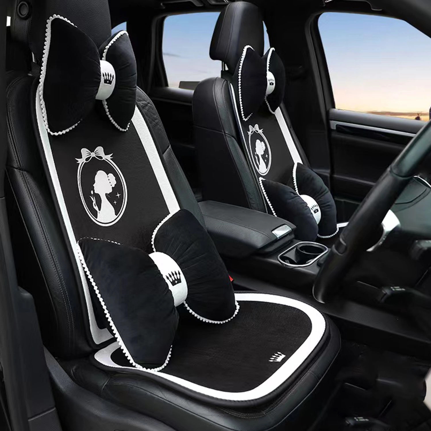 This plush car seat cushion is universal, suitable for all types of car seats, especially suitable for use on leather seats. It will not slip and protect the leather seats from wear. The price includes 7 pieces: 2 front cushions, 4 backs and 1 rear cushion