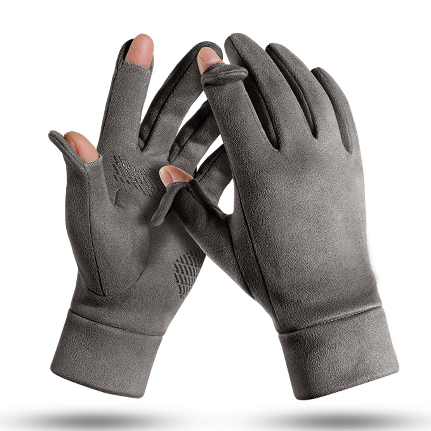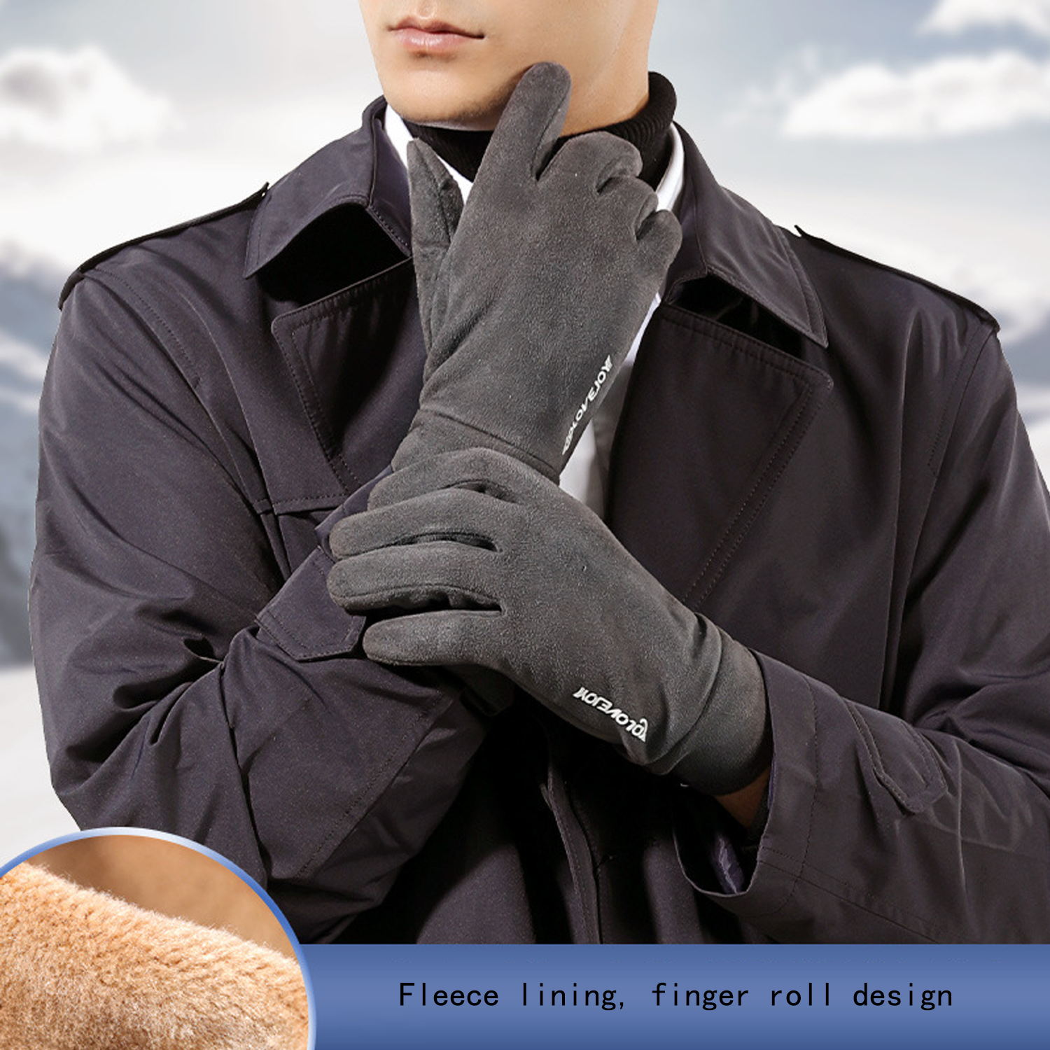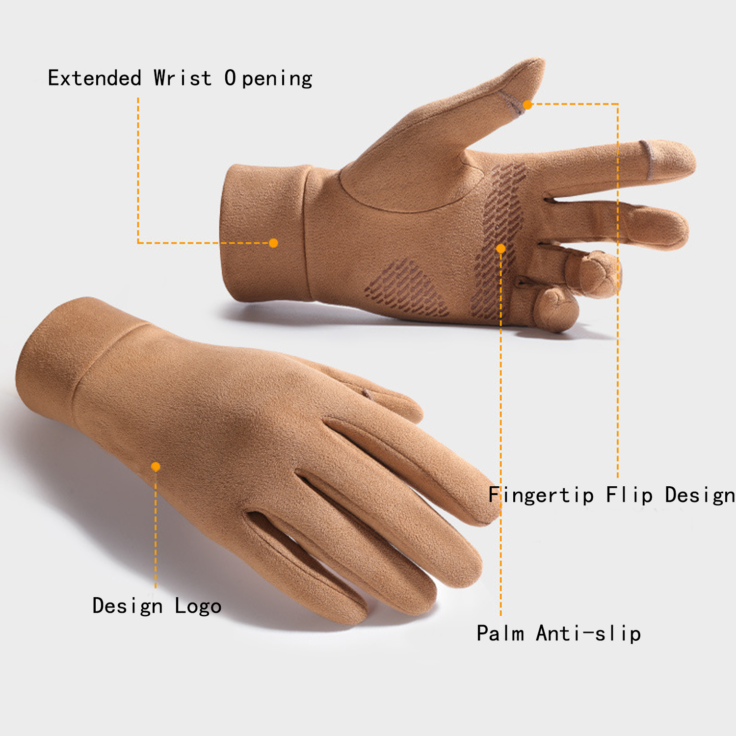 Warm suede cycling gloves with windproof comfort, anti-slip grip, touchscreen tips, and secure fit for safe, flexible outdoor use.