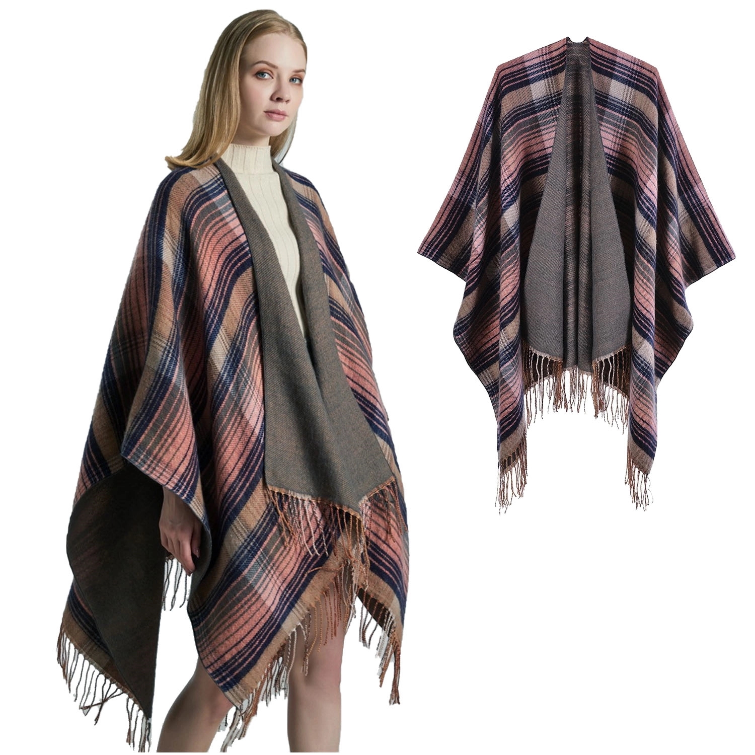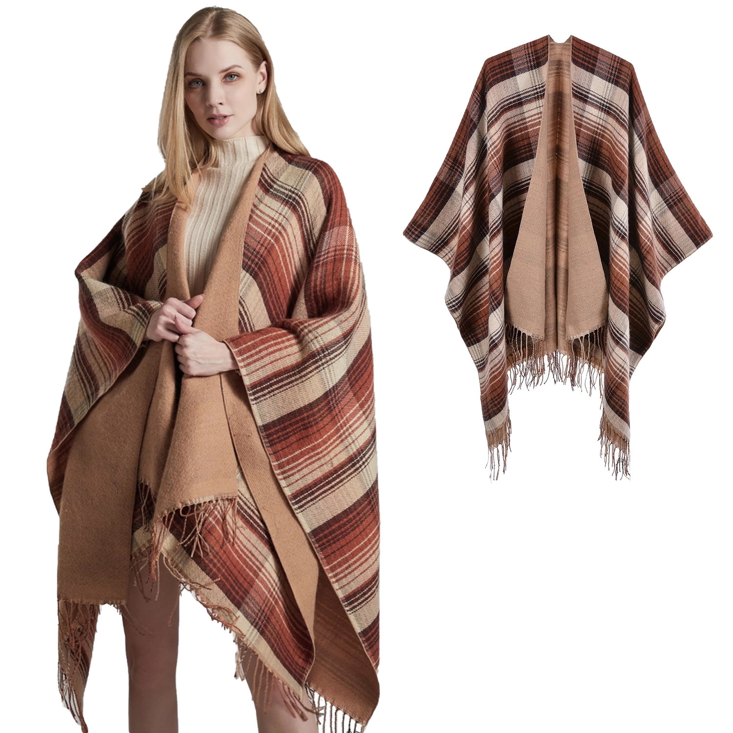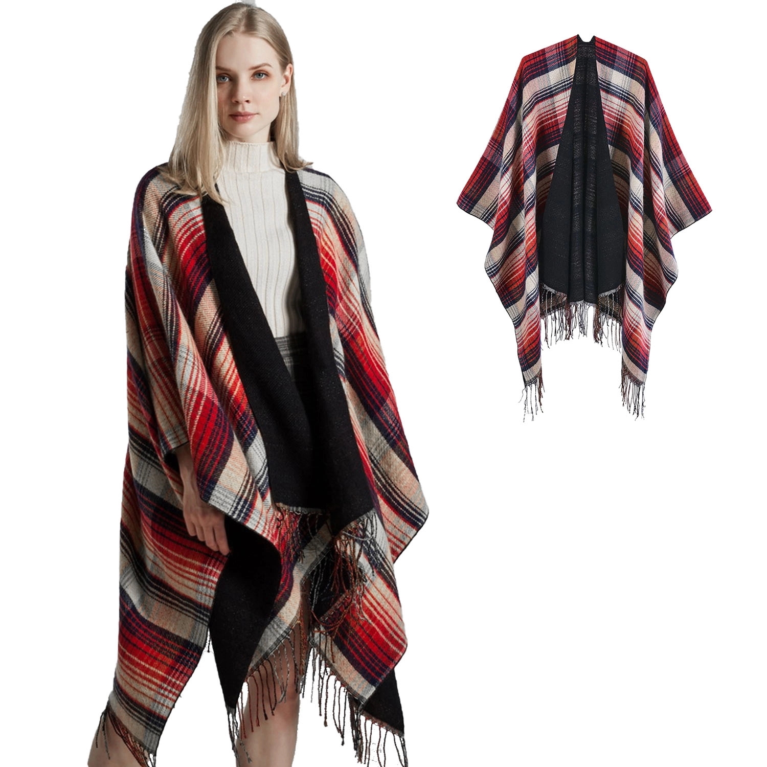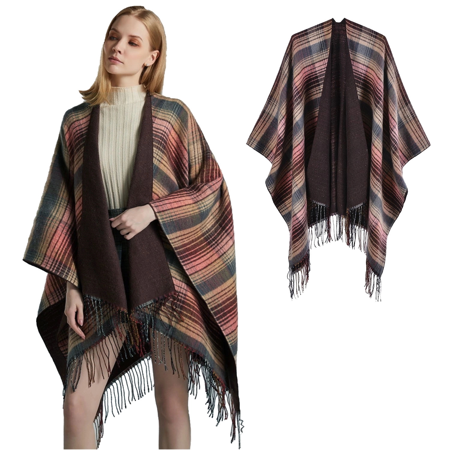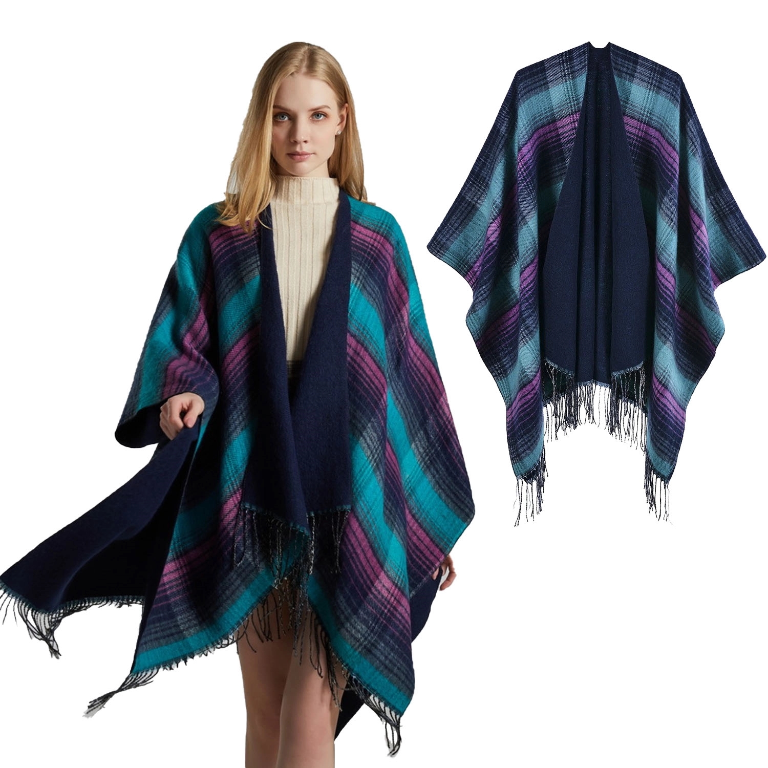 This is a particularly good-looking classic plaid split shawl. Wear this cape shawl when you go out in the cold winter. Not only can you create a versatile and beautiful shape, but also keep out the cold and keep warm. like it? When washing, it is recommended to use neutral detergent to hand wash, and the water temperature should not exceed 30 degrees.