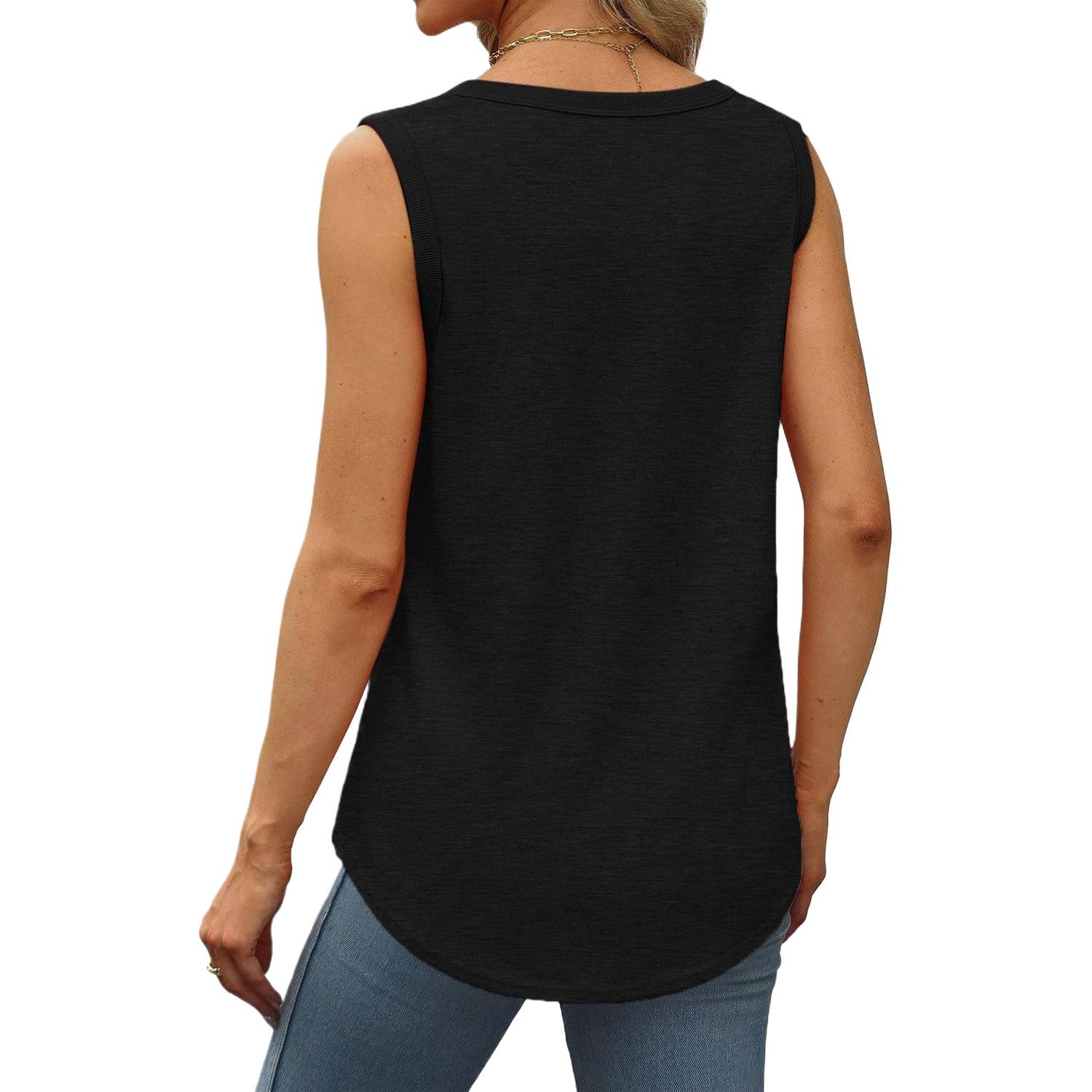 Women Sleeveless Crew Neck Solid Color Tank Top