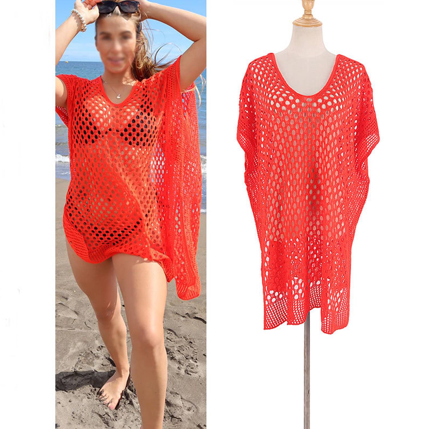 Lightweight mesh cover-up with hollow design, loose fit, and breathable fabric—perfect for beach, pool, or summer vacation wear.
