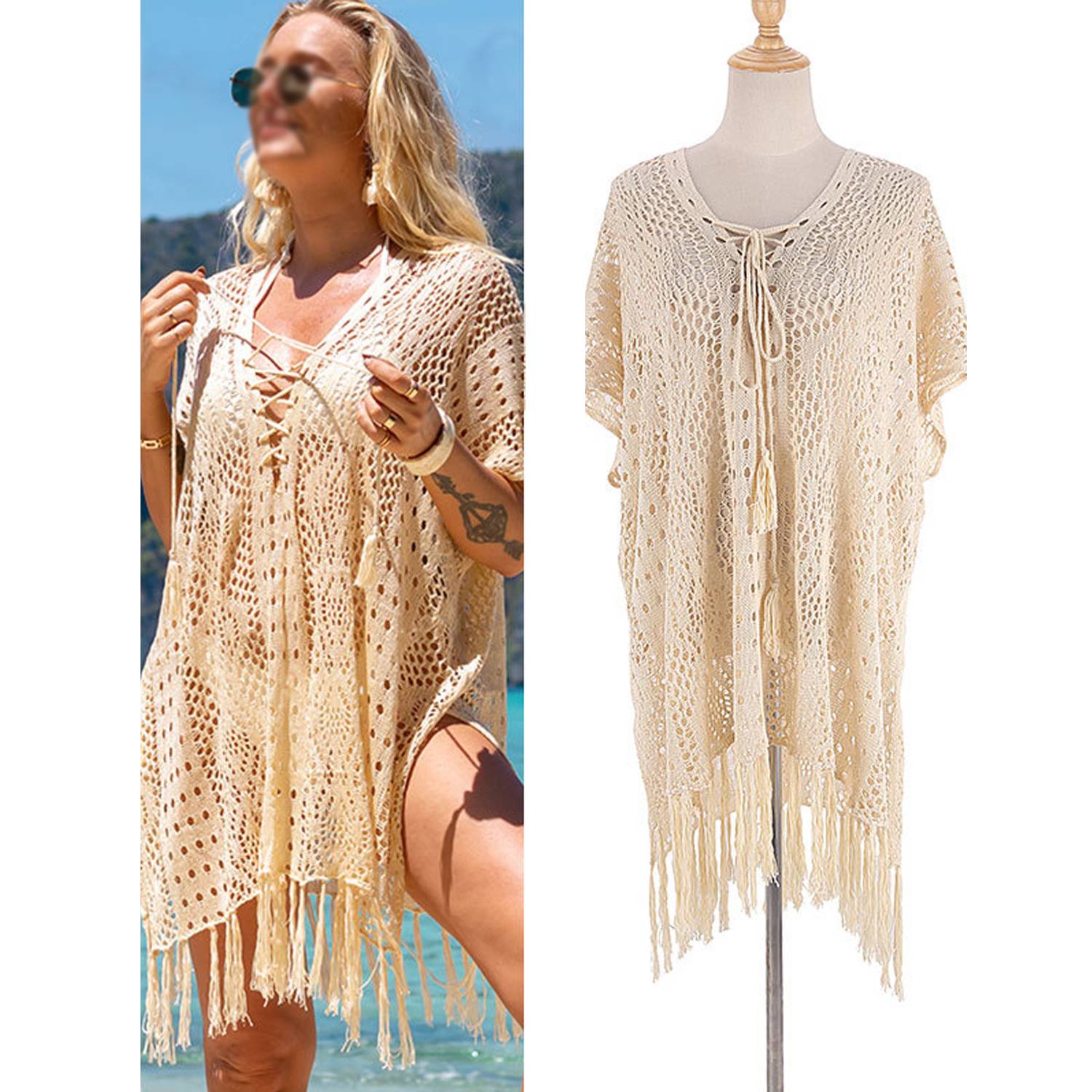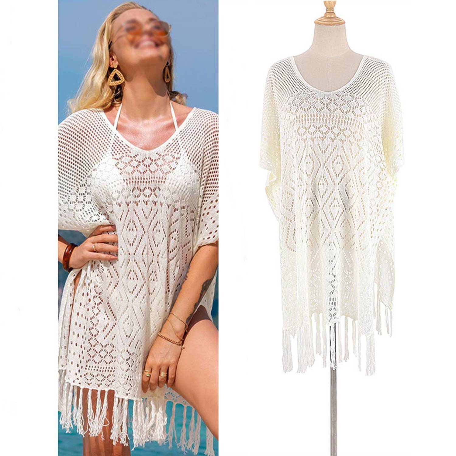 Crafted from lightweight, breathable polyester, this beach cover-up offers soft comfort and lasting wear. The airy mesh crochet design enhances ventilation and creates a chic, sheer look with modern and sexy appeal. Its oversized fit ensures ease of movement, while the intricate hollow-out details add refined style. Ideal for beach vacations, poolside lounging, music festivals, or resort wear, this versatile piece combines functionality, fashion, and all-day comfort.